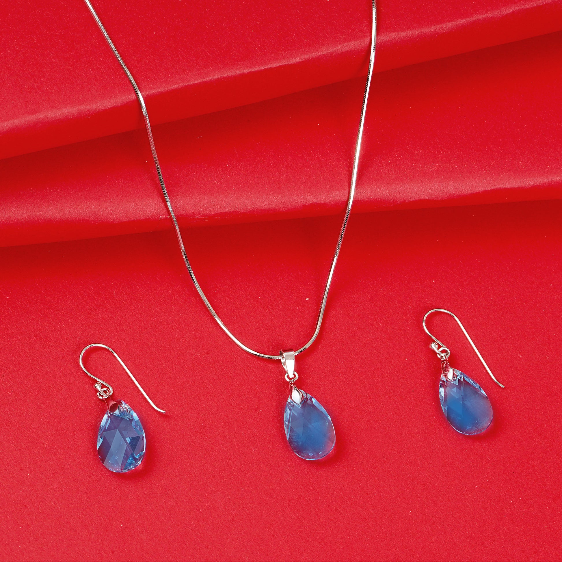 92.5% BIS Hallmarked Sterling Silver Sapphire Droplet Pendant Set