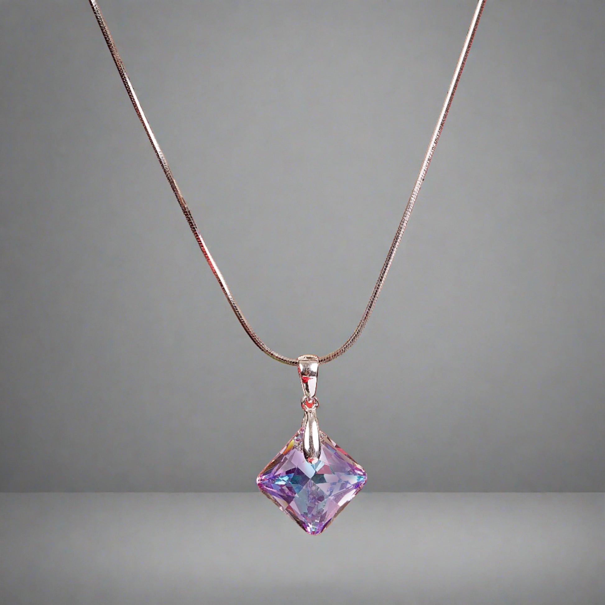 Crafted in 92.5% BIS Hallmarked sterling silver with a stunning amethyst-toned crystal.