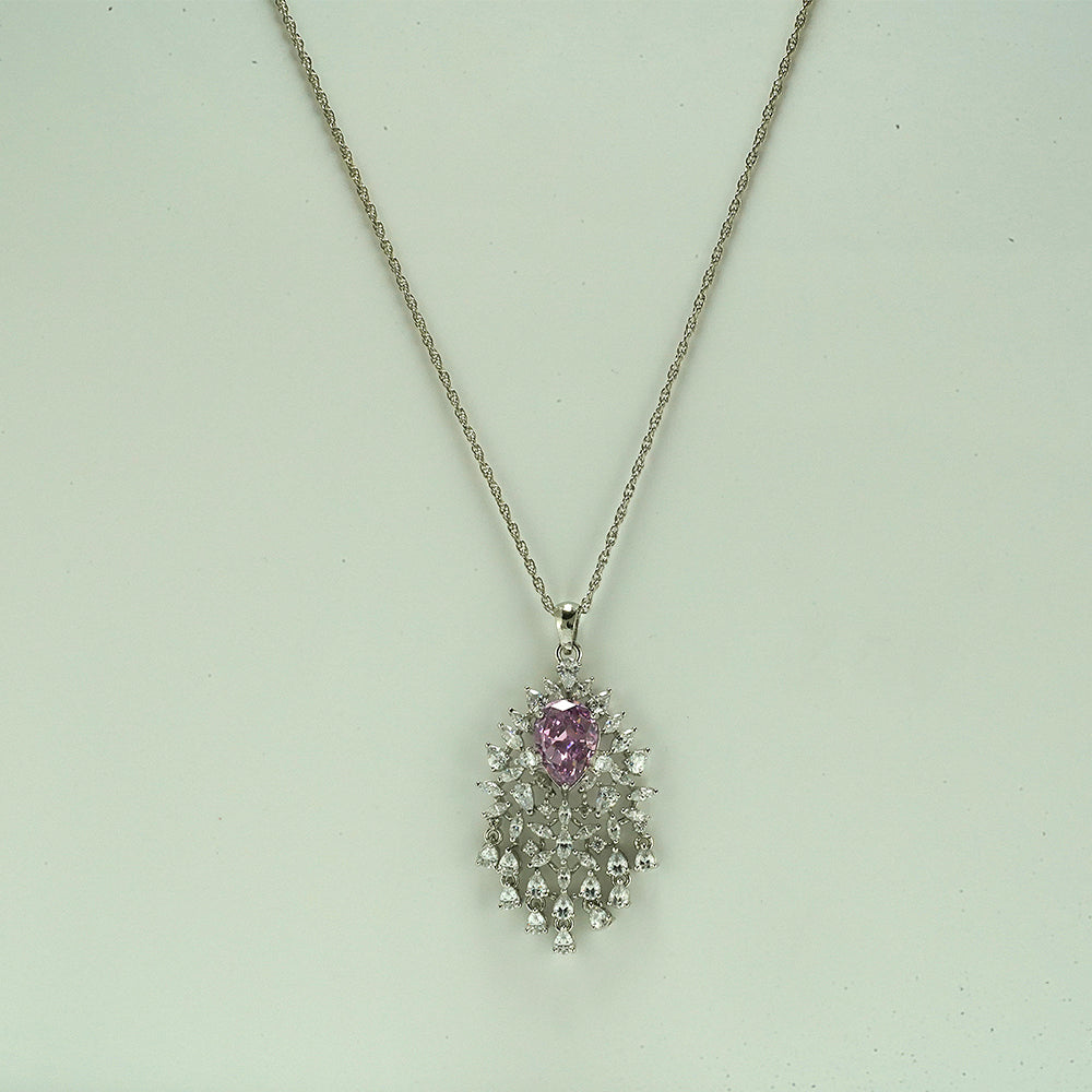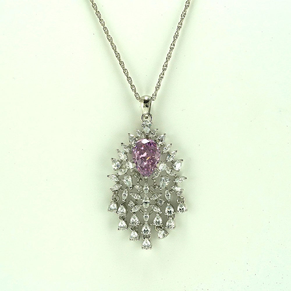 92.5% BIS Hallmarked Pink Glamira Zircon Silver Pendant with Chain