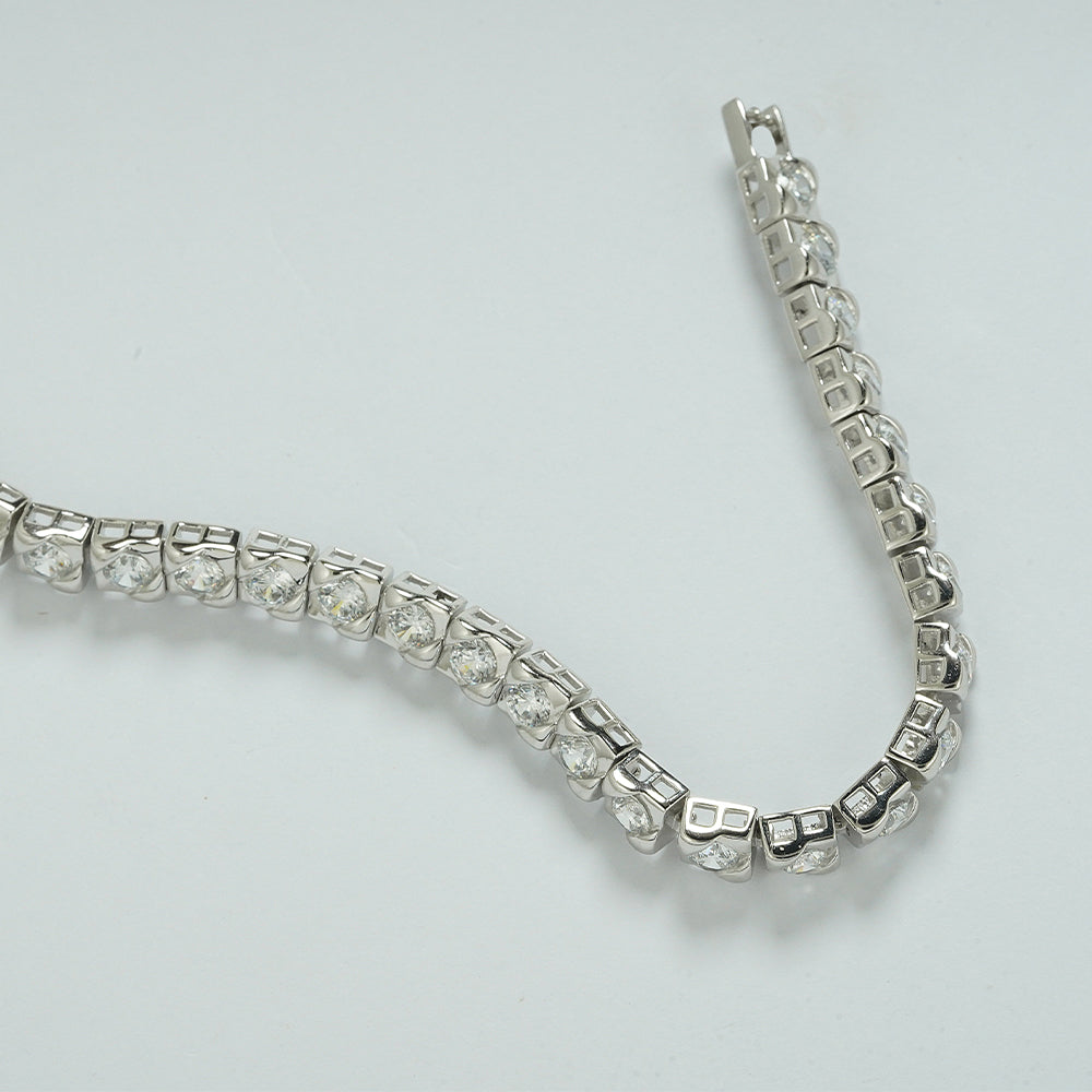 Elegant Design: A sleek, curved silhouette adorned with sparkling zircon stones.