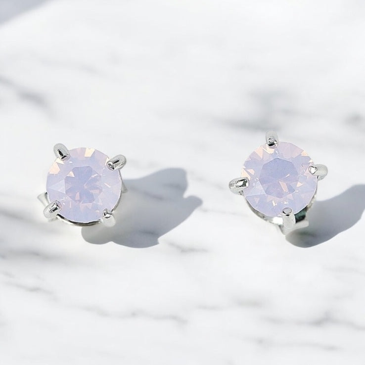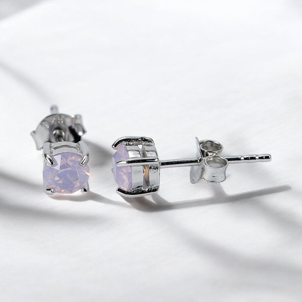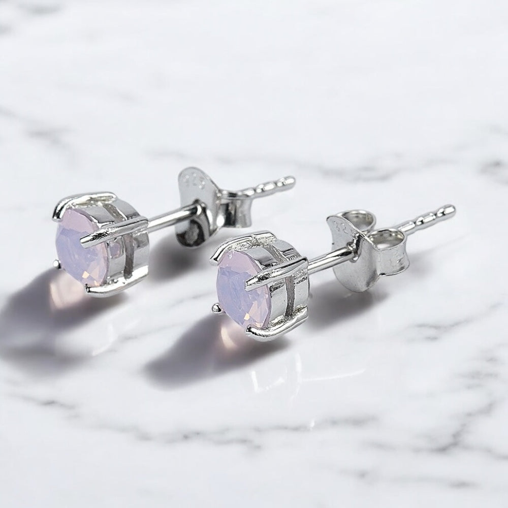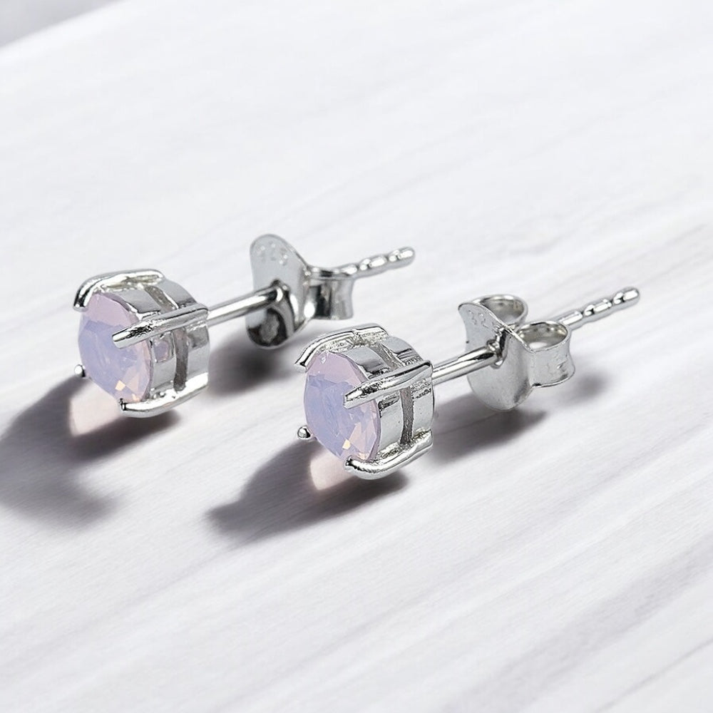 92.5% BIS Hallmarked Silver Stud Earrings with Bluish Pink Crystal