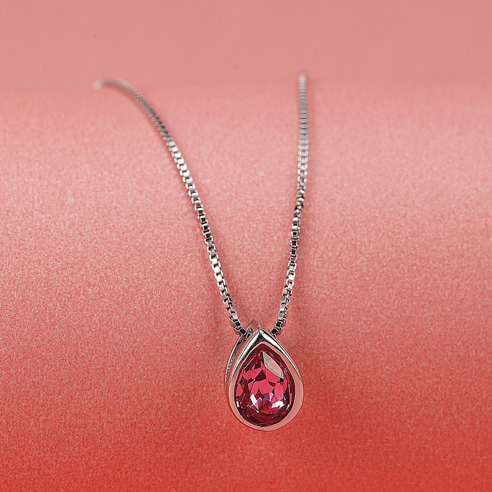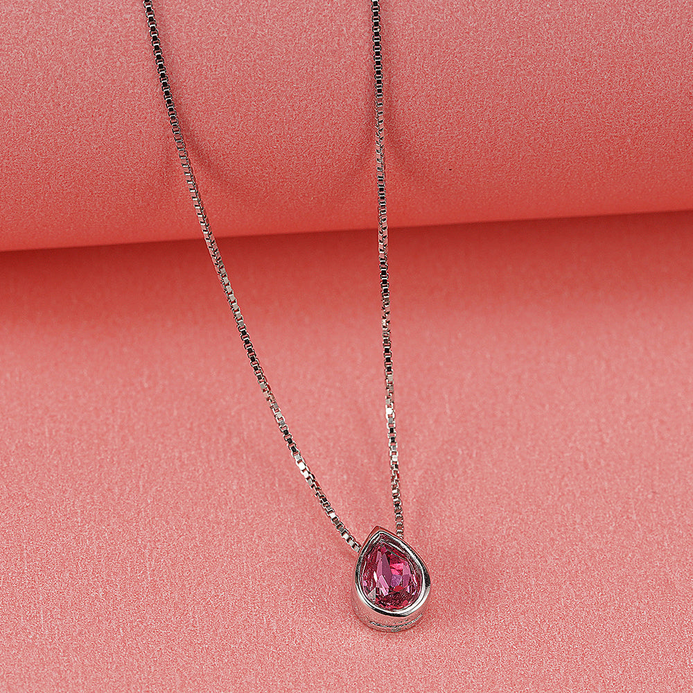 92.5% BIS Hallmarked Sterling Silver Chain with Blush Pink Drop Pendant
