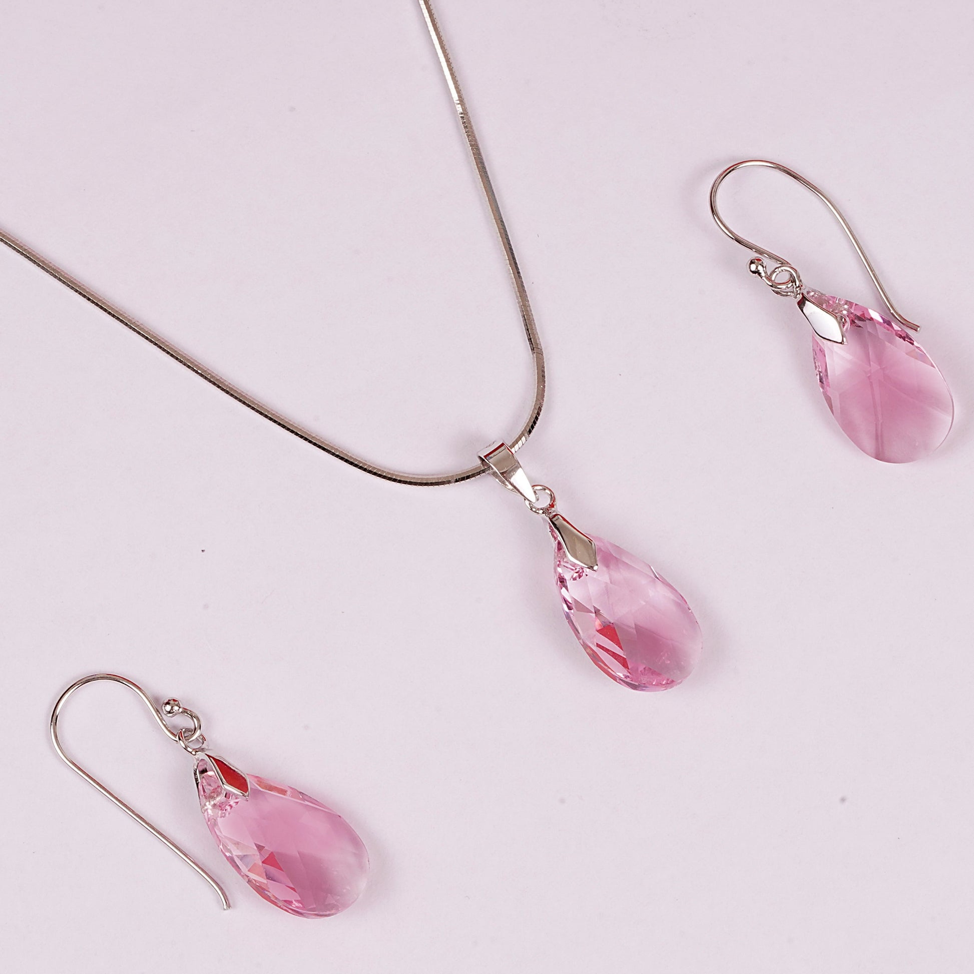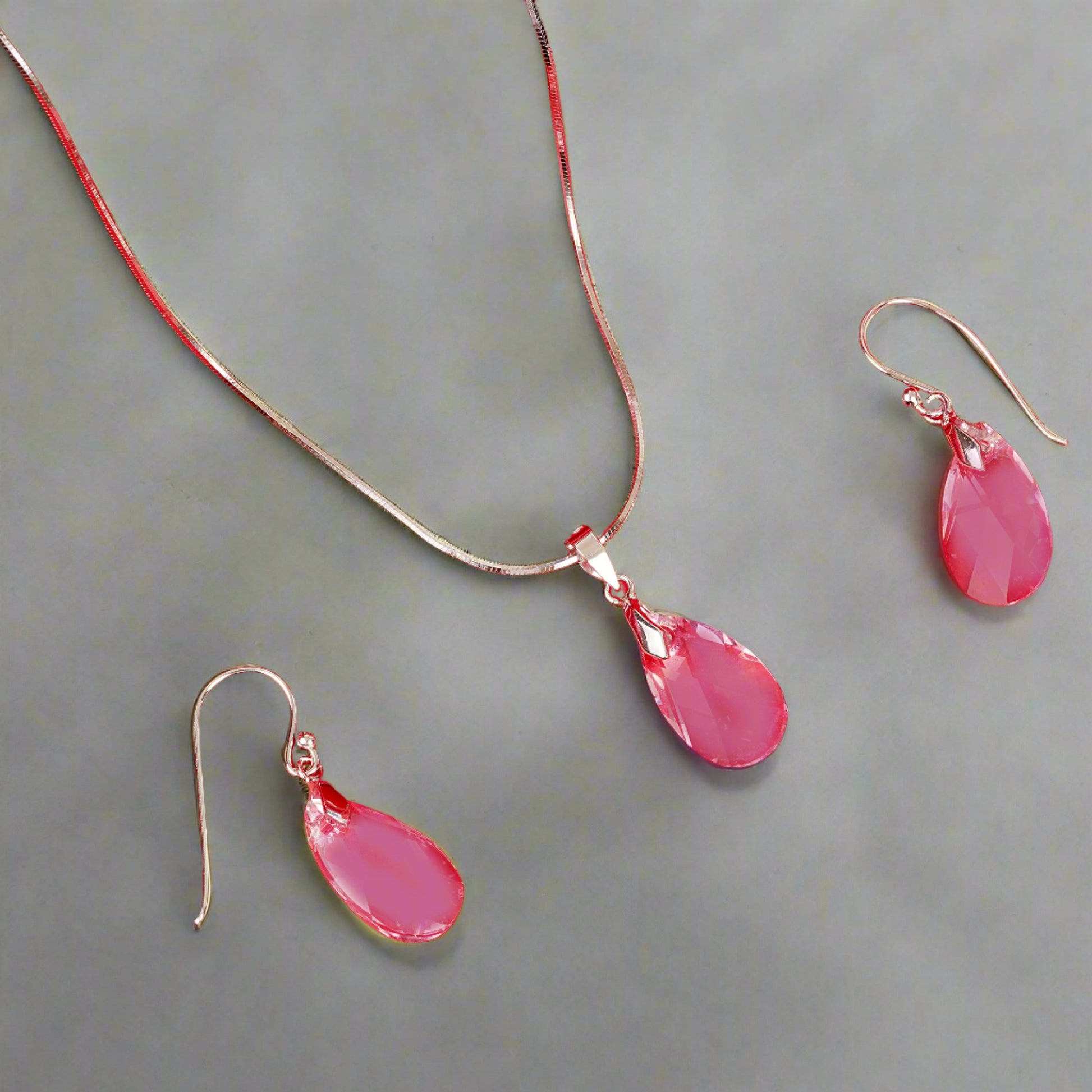92.5% BIS Hallmarked Sterling Silver Rose Pink Droplet Chain Set