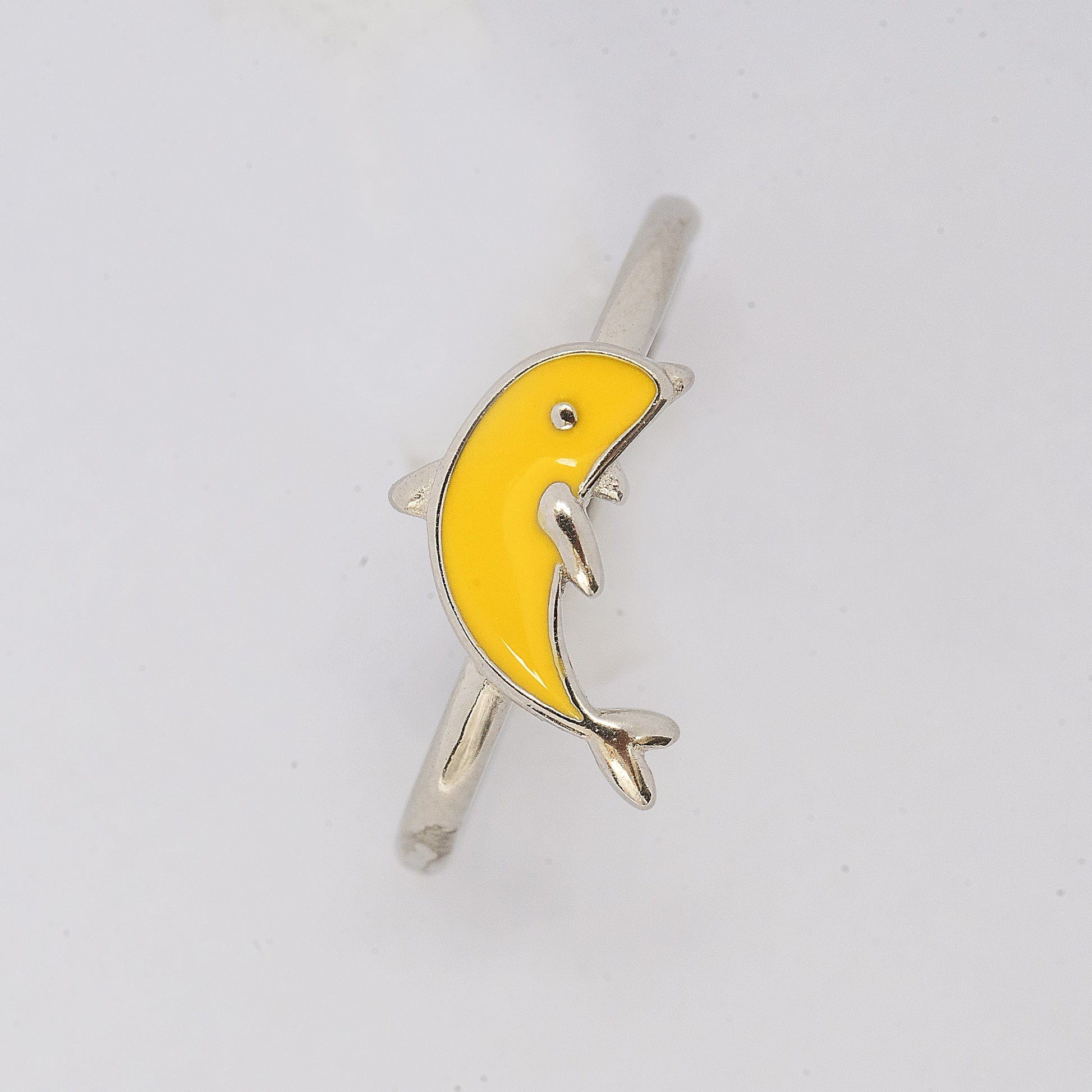 Sterling Silver Yellow Enamel Dolphin Ring for Kids