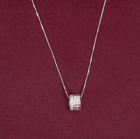 Stylish ring-shaped pendant studded with zircon stones.Crafted from hallmark 92.5% sterling silver.Sleek and versatile for...