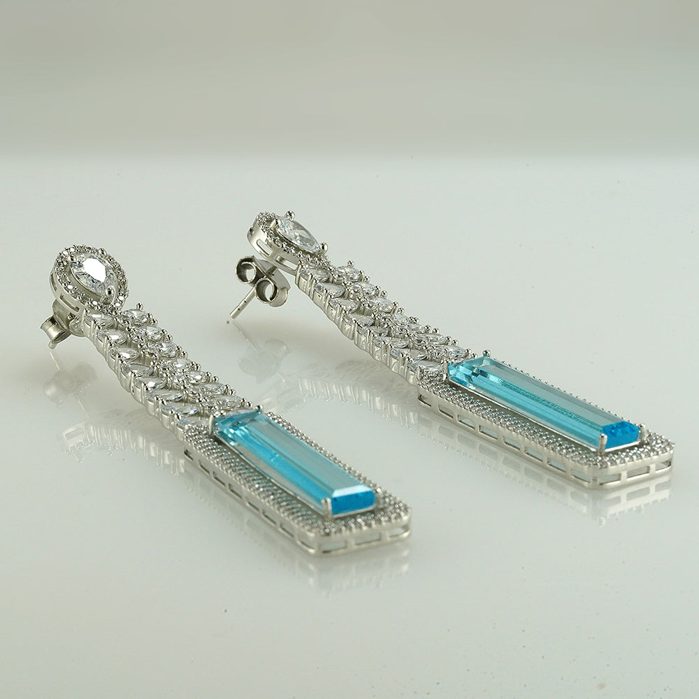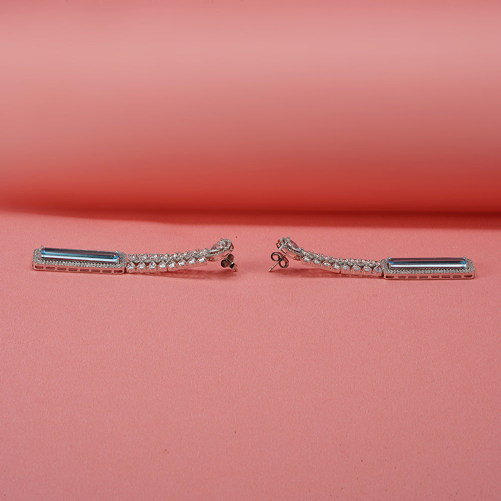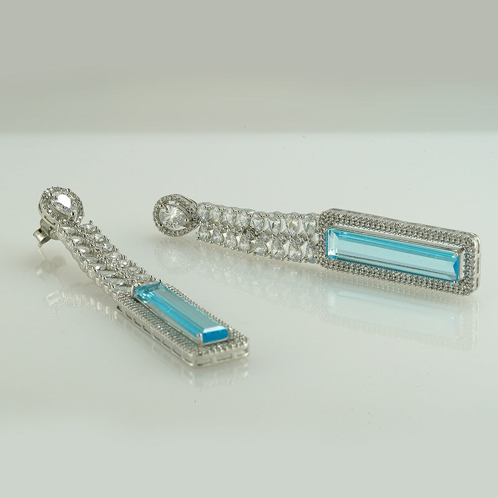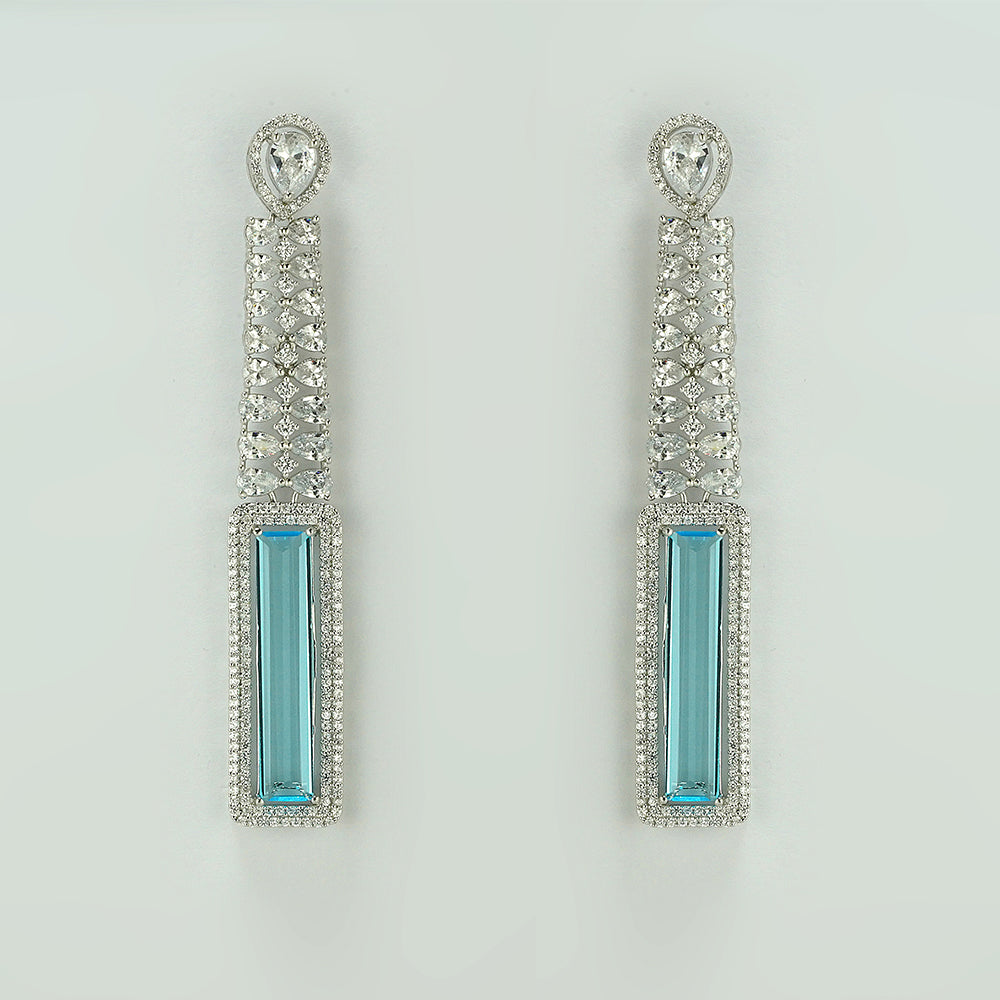 Silver White & Sky Blue Zircon Danglers