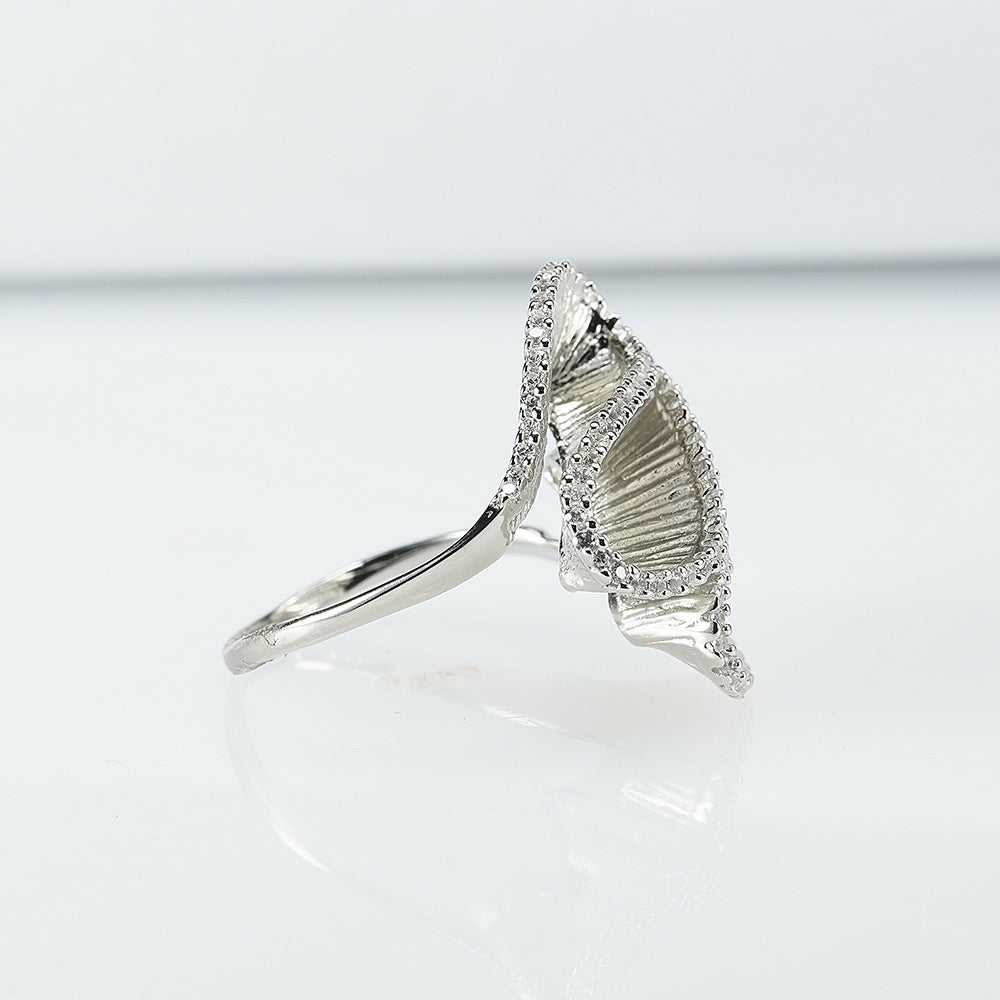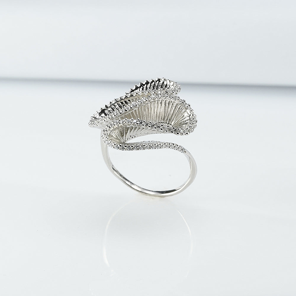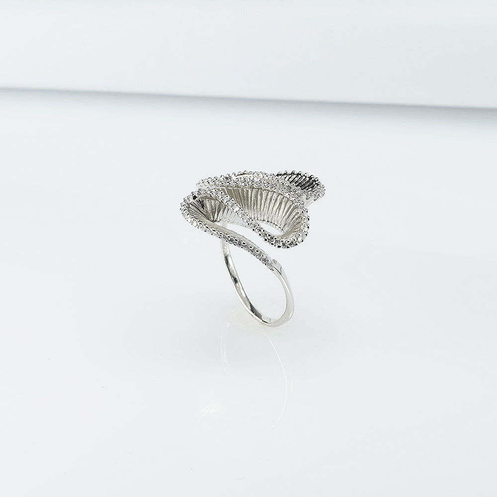 Silver Zircon Coral Ring