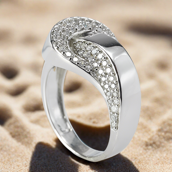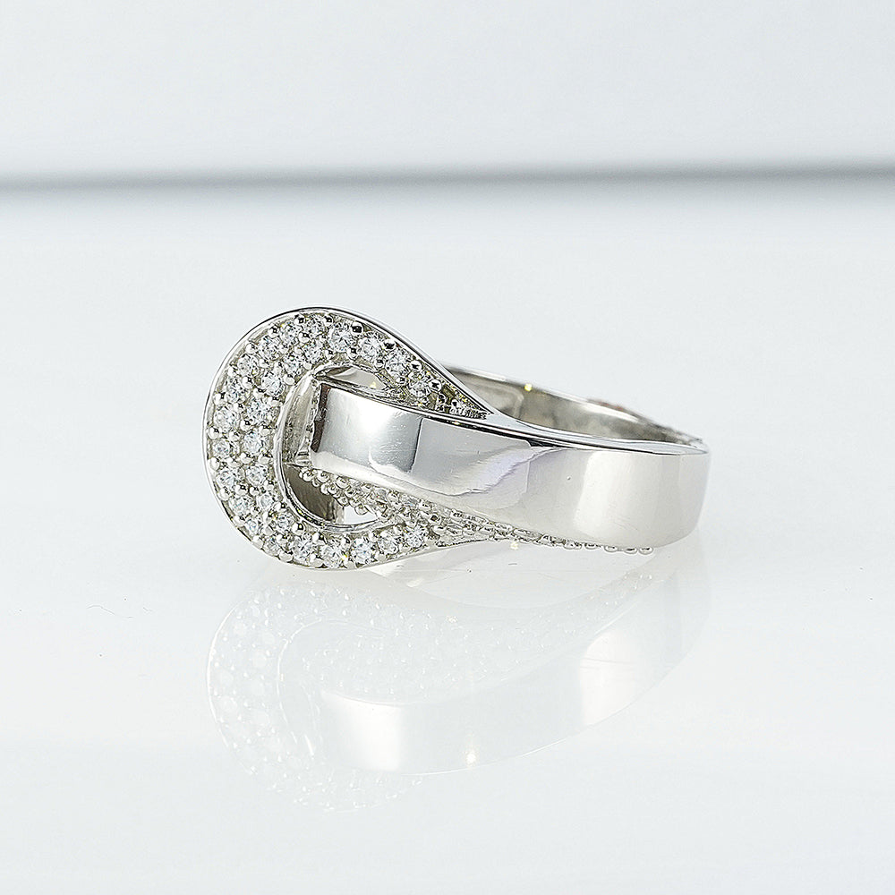 The Silver Zirconia Belt Buckle Ring is a unique and eye-catching piece inspired by the design of a belt buckle. It features zirconia stones embedded in the buckle-shaped centerpiece, creating a dazzling and stylish look. This ring is perfect for those who want to add a touch of sophistication and flair to their outfit.