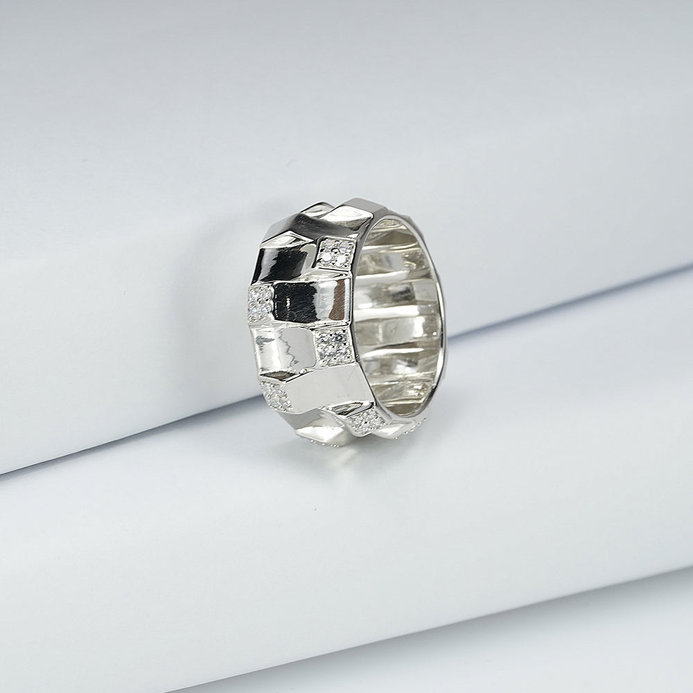 silver zirconia upside down ring