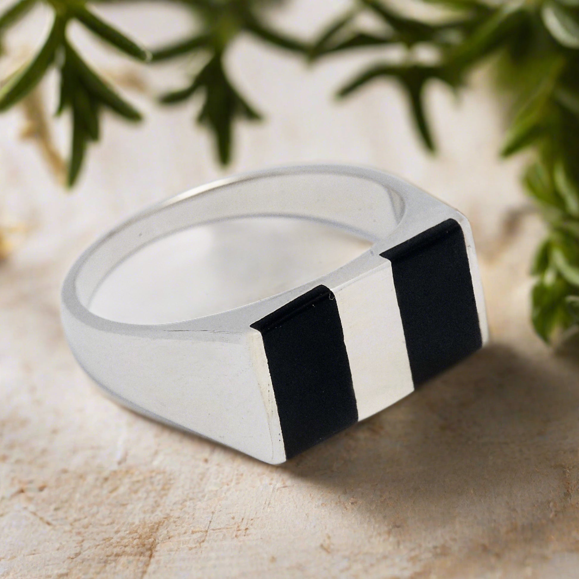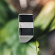 1. Crafted from 92.5% sterling silver with a sleek black enamel band.