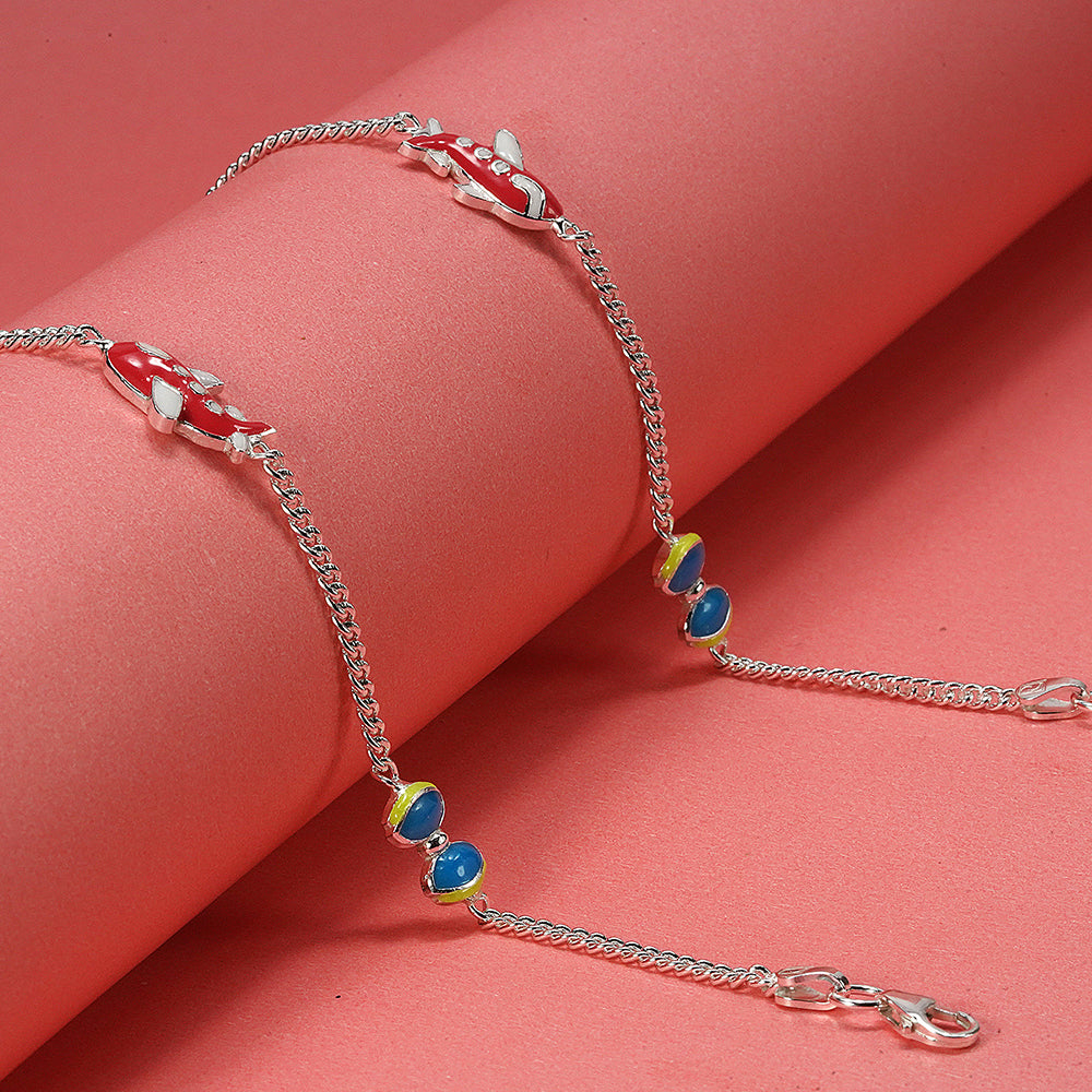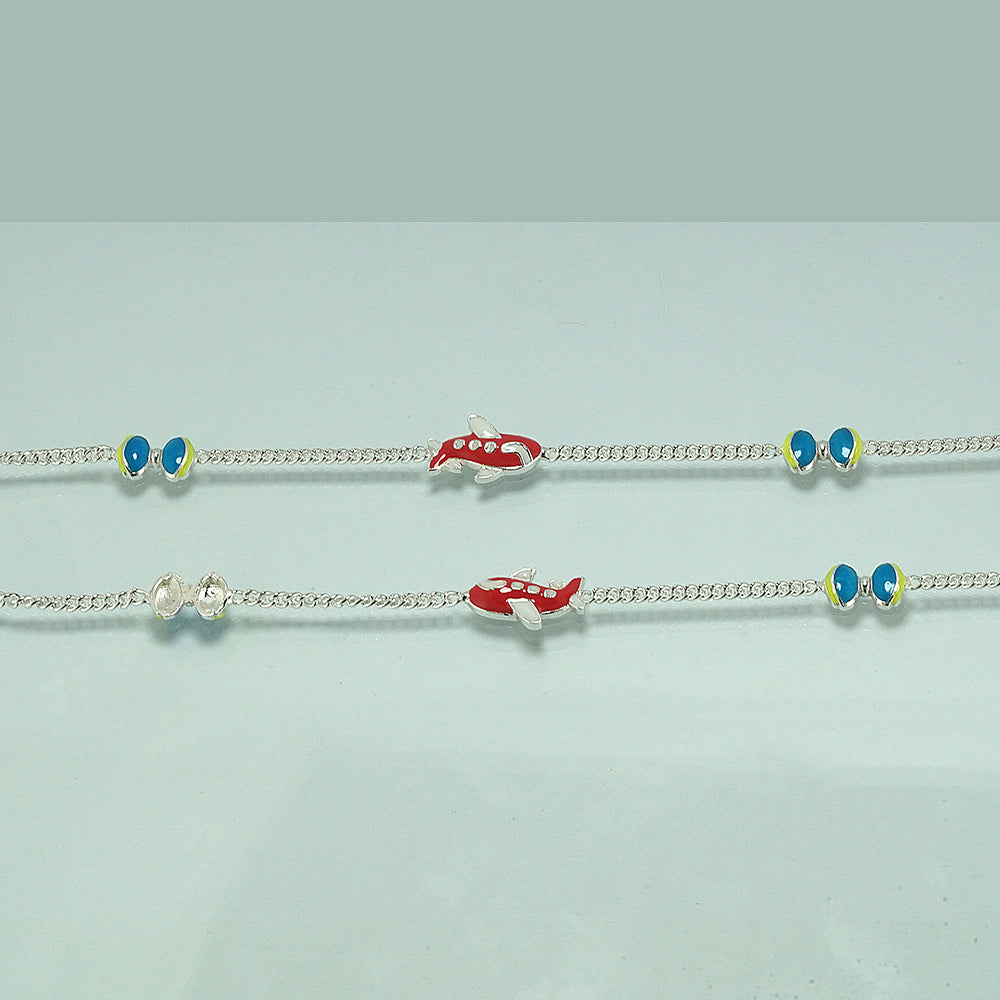 Sterling Silver Bow and Airplane Kids Anklet