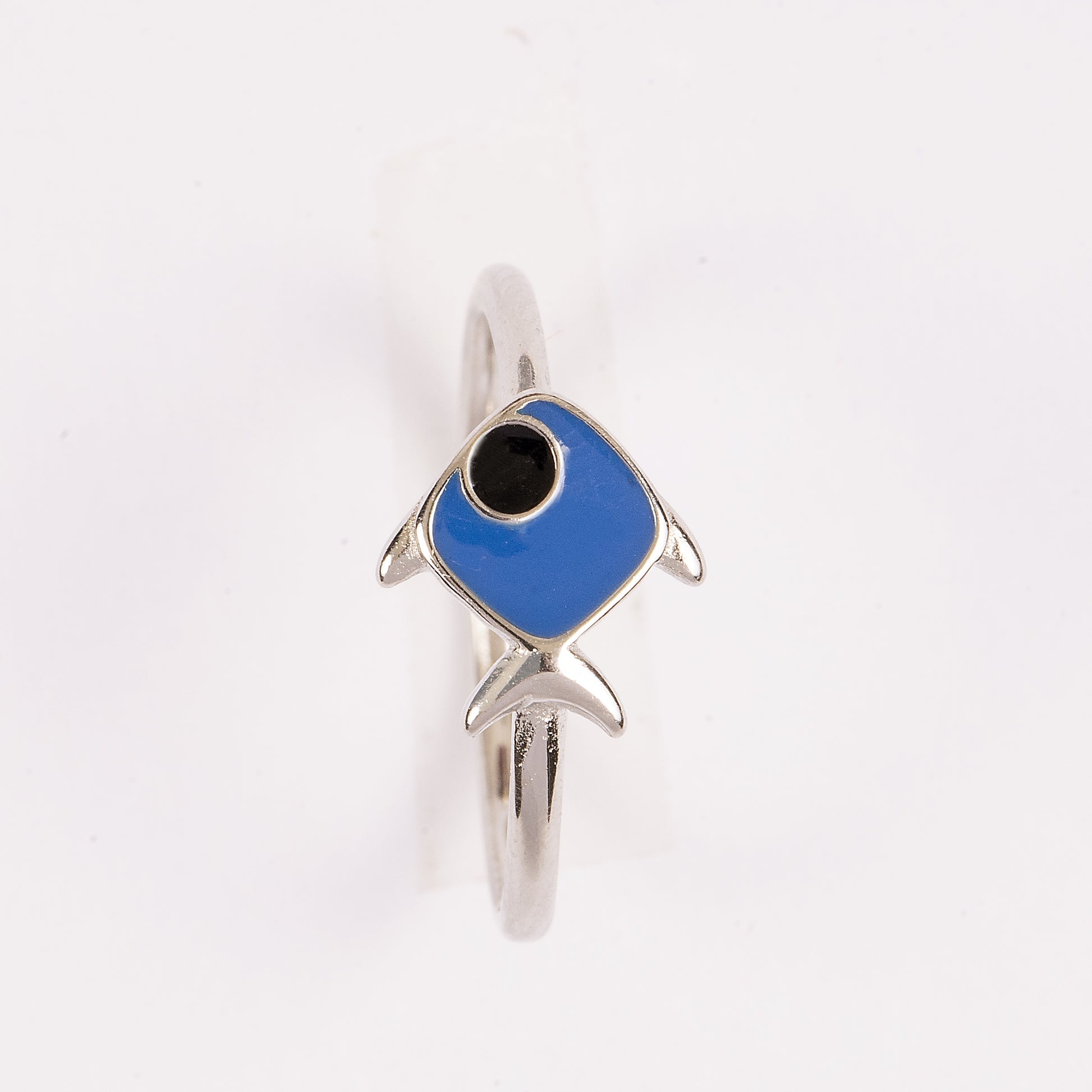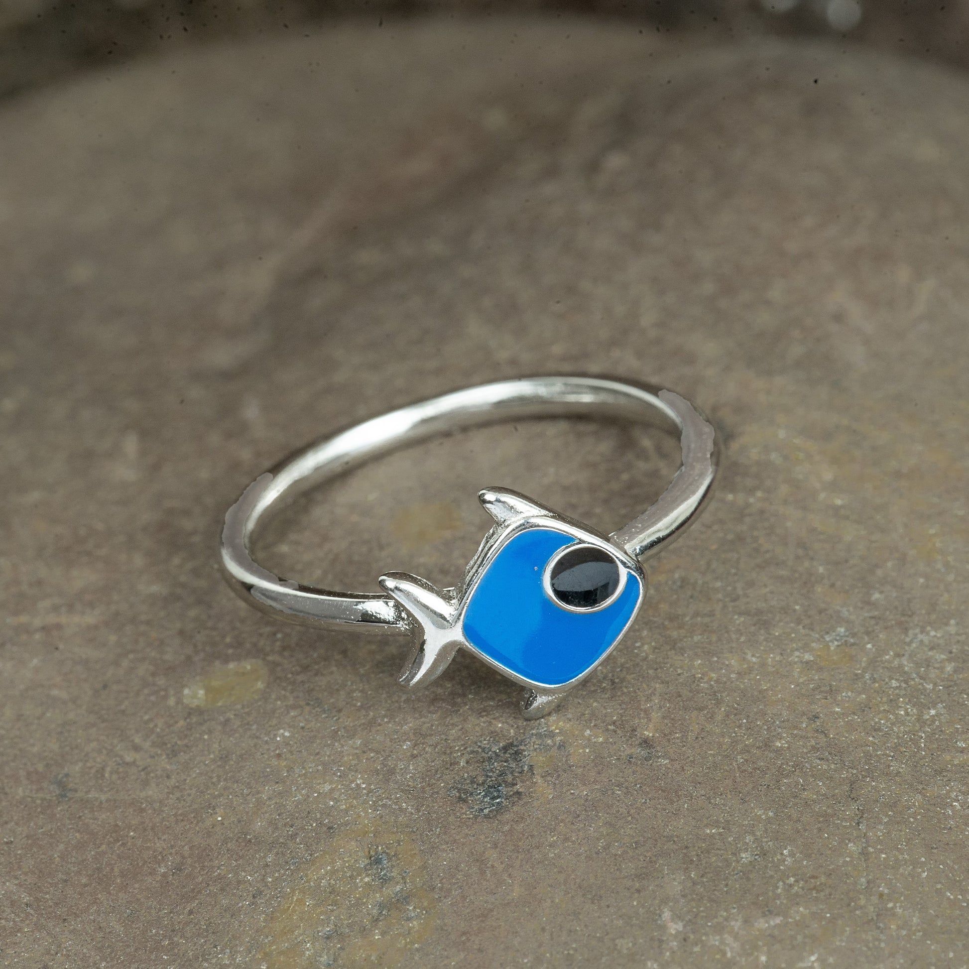 Features a playful dark blue enameled fish for a vibrant, marine-inspired design.