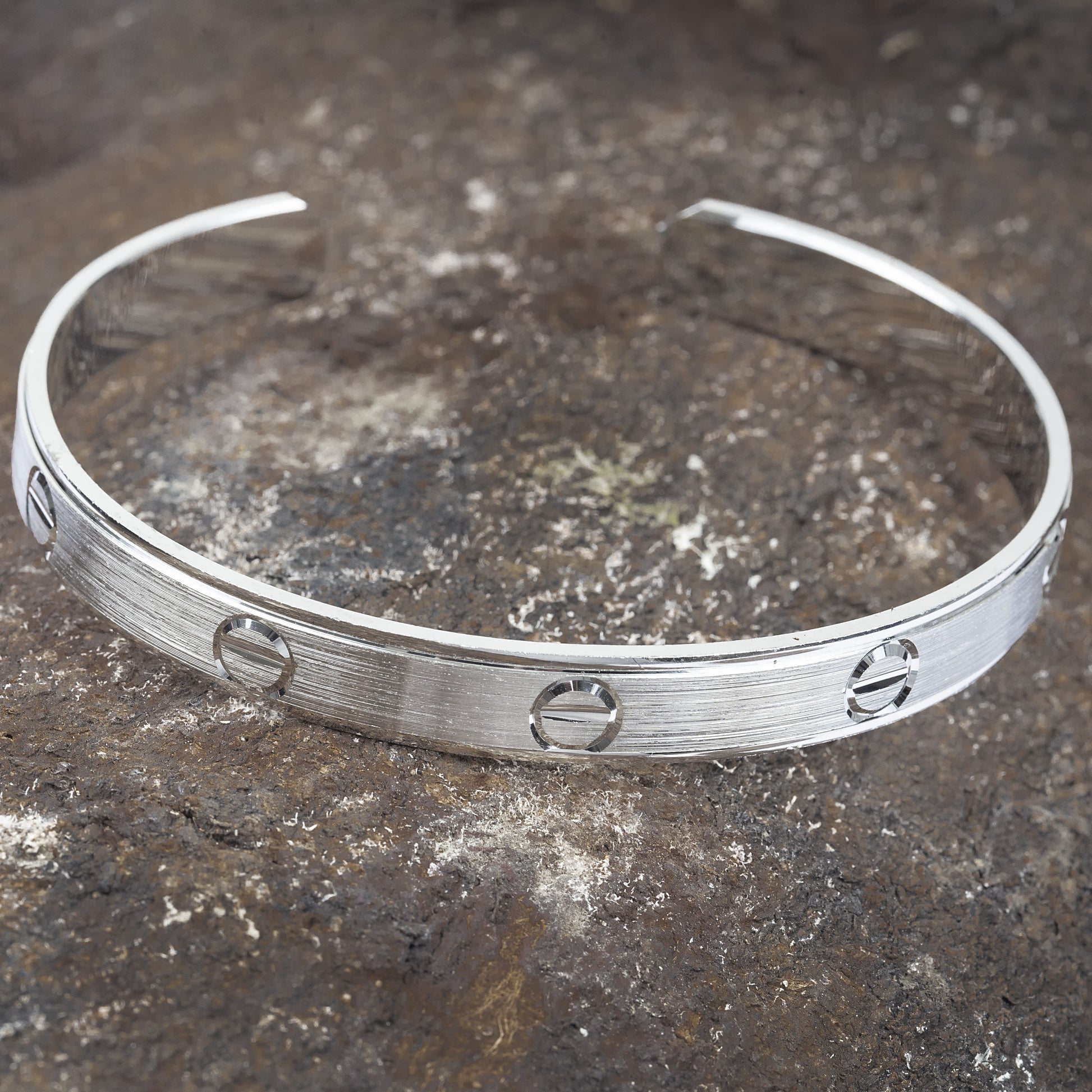 Silver Solid Nail Design Men’s Cuff Bracelet crafted from 92.5% sterling silver.