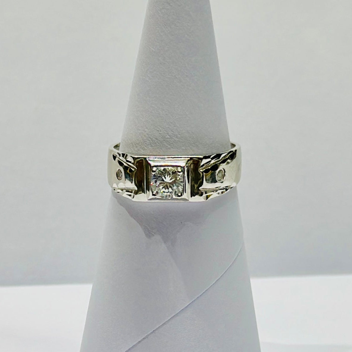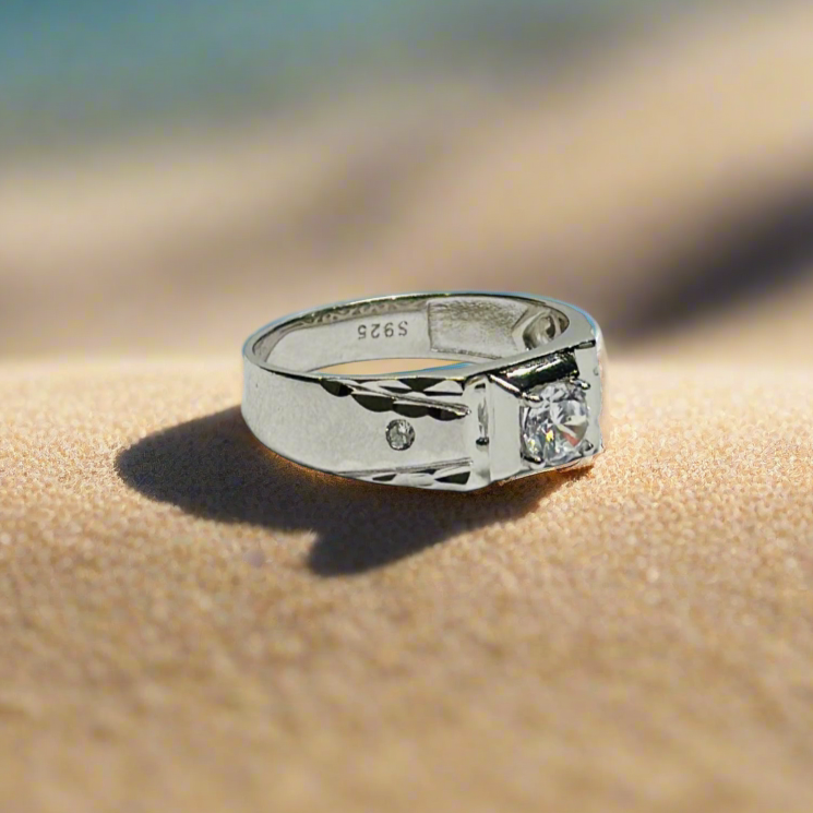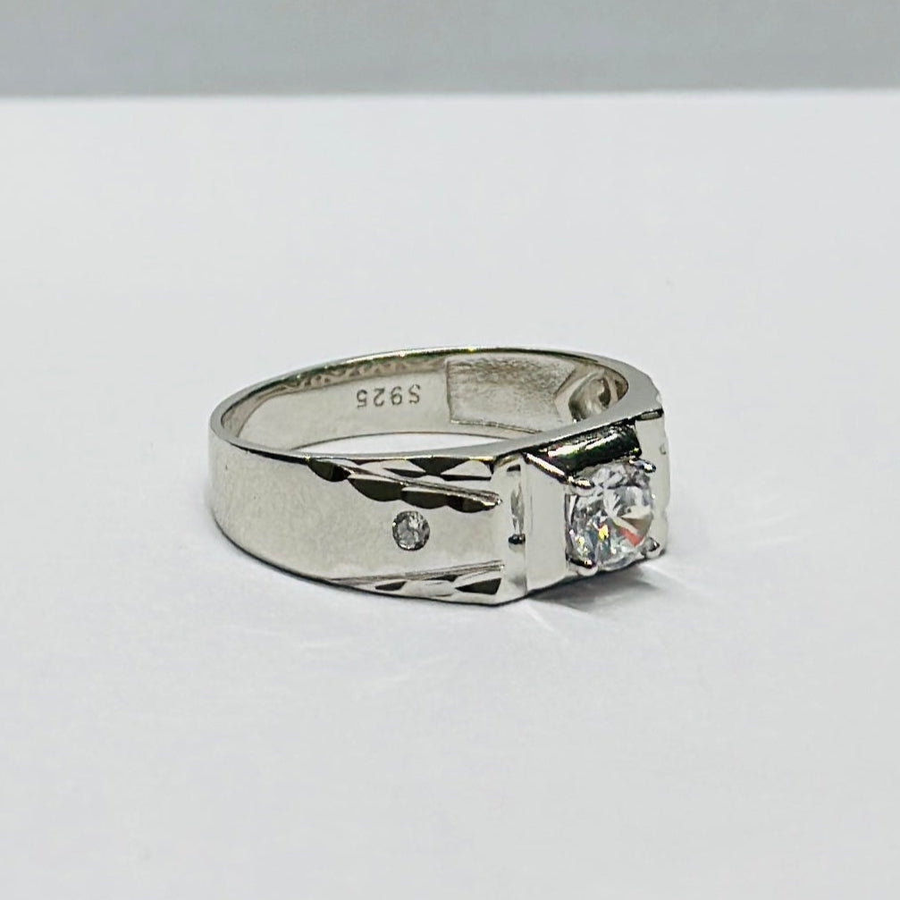 Sterling Silver Designer Zircon Solitaire Ring for Men