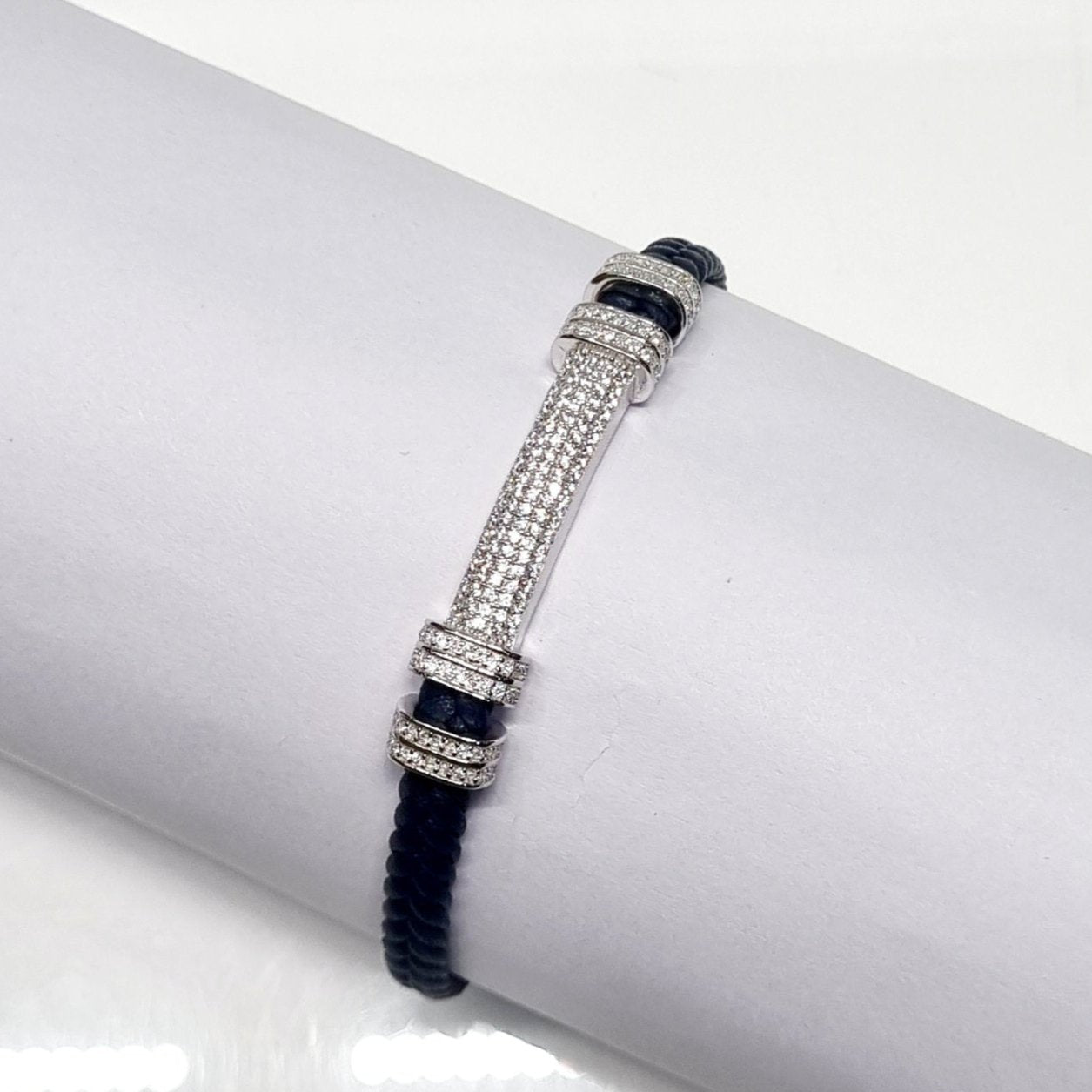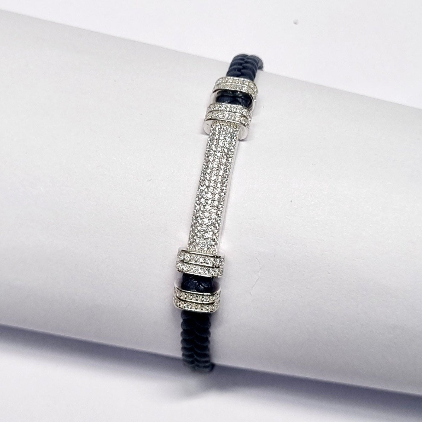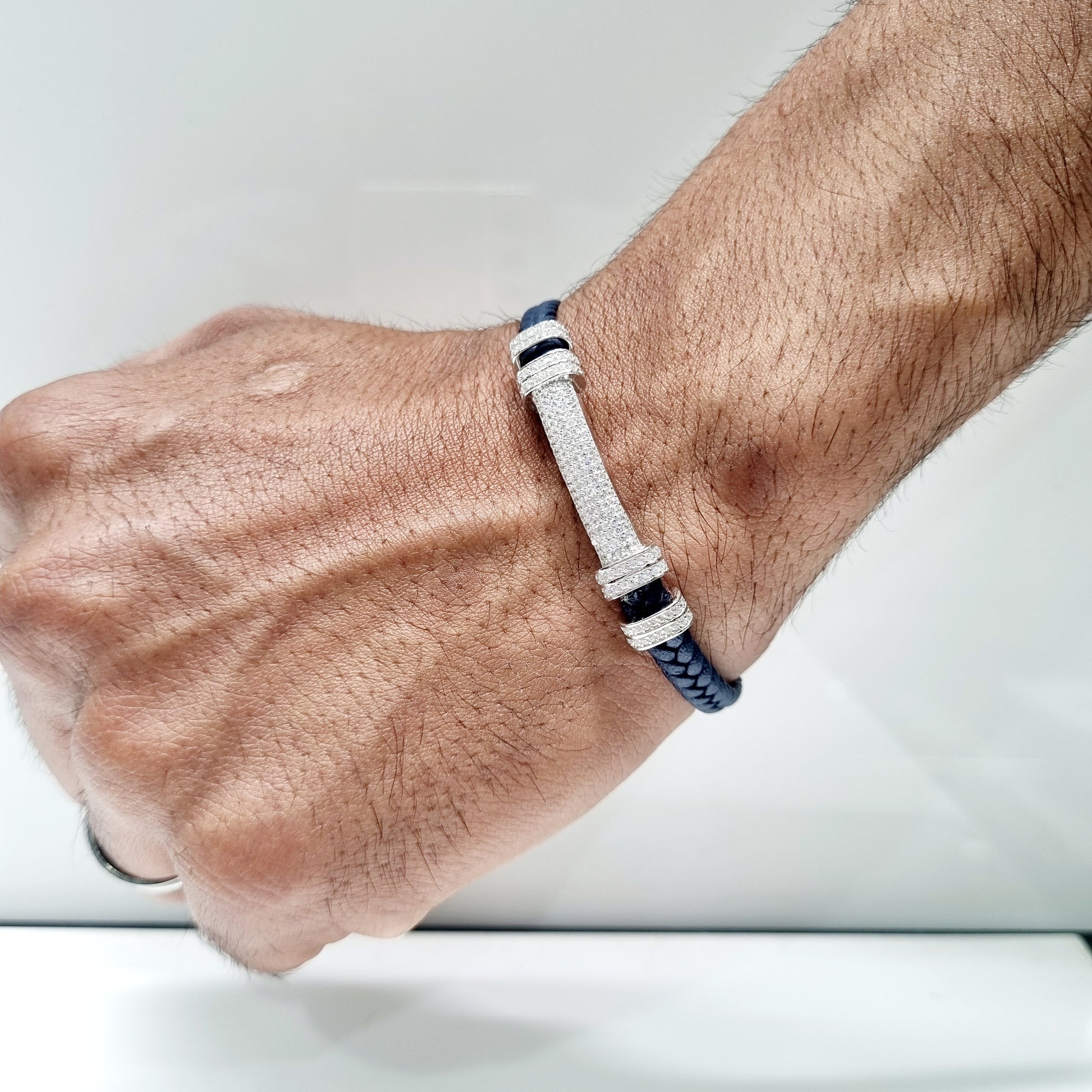 Sterling Silver Dumbbell-Inspired Zircon Bracelet for Men