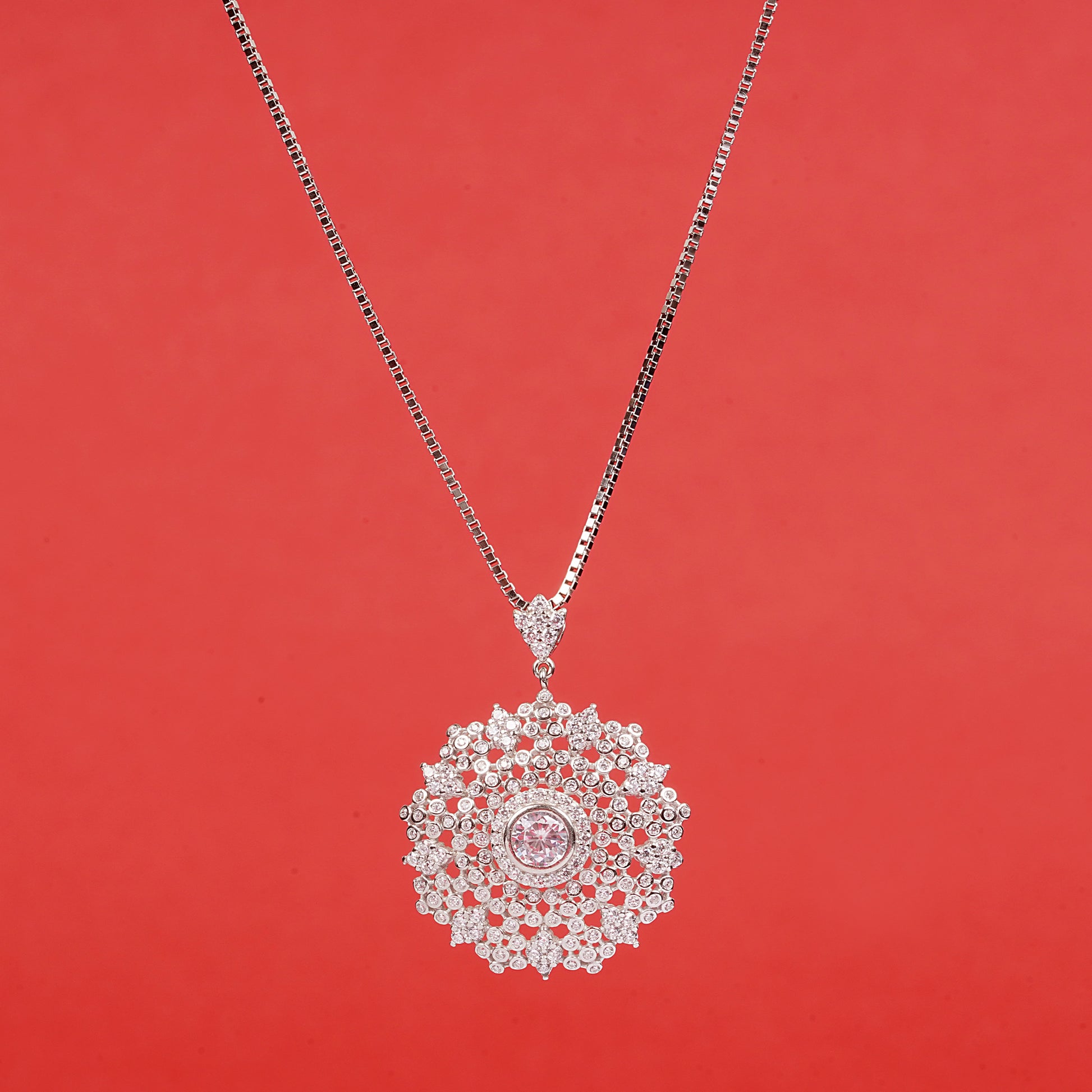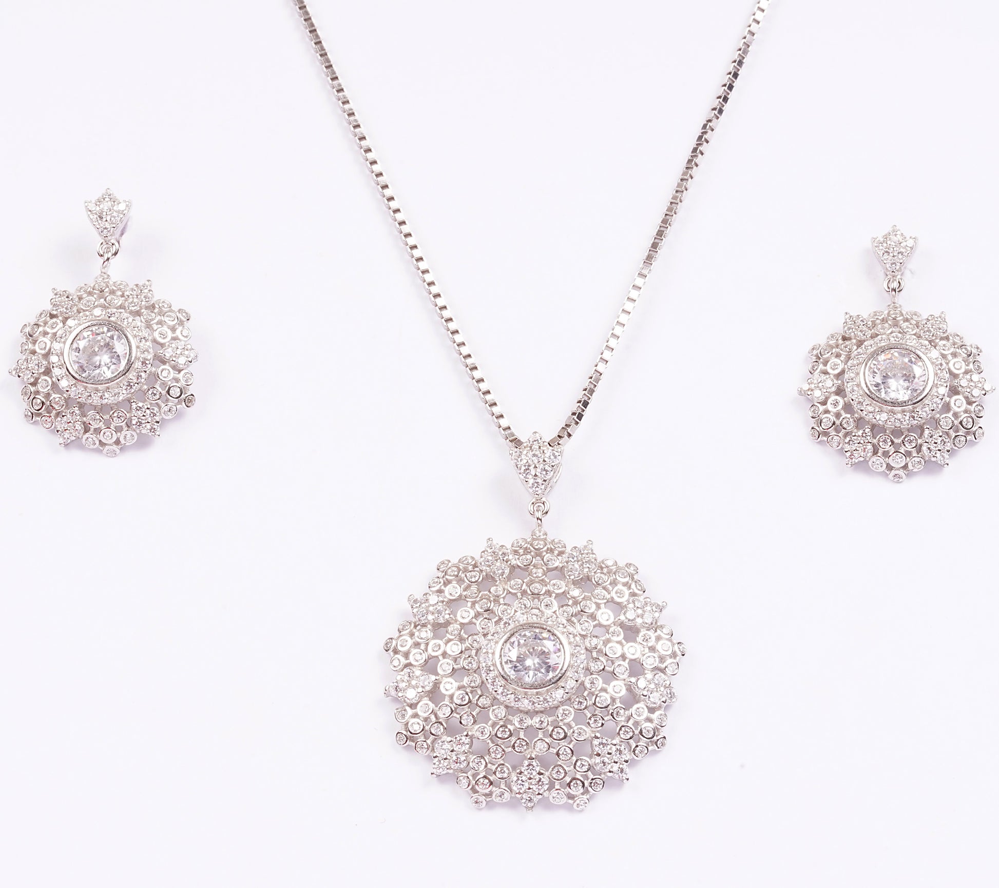 STERLING SILVER FLORAL FILIGIREE ZIRCON STUDDED PANDENT SET