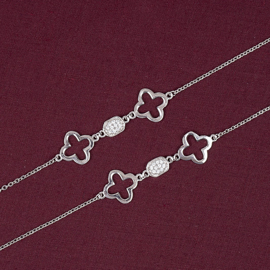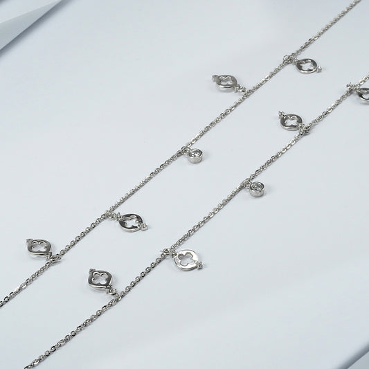 Delicate silver anklet with dainty charm accentsStudded with sparkling zircon stones for added shineLightweight and...