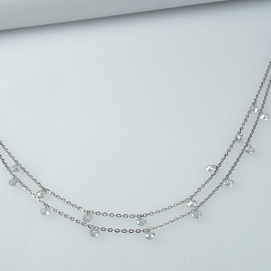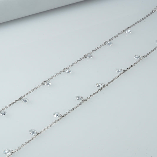 Elegant double-layered anklet crafted in sterling silver for a refined finish.Features shimmering zircon drop charms...