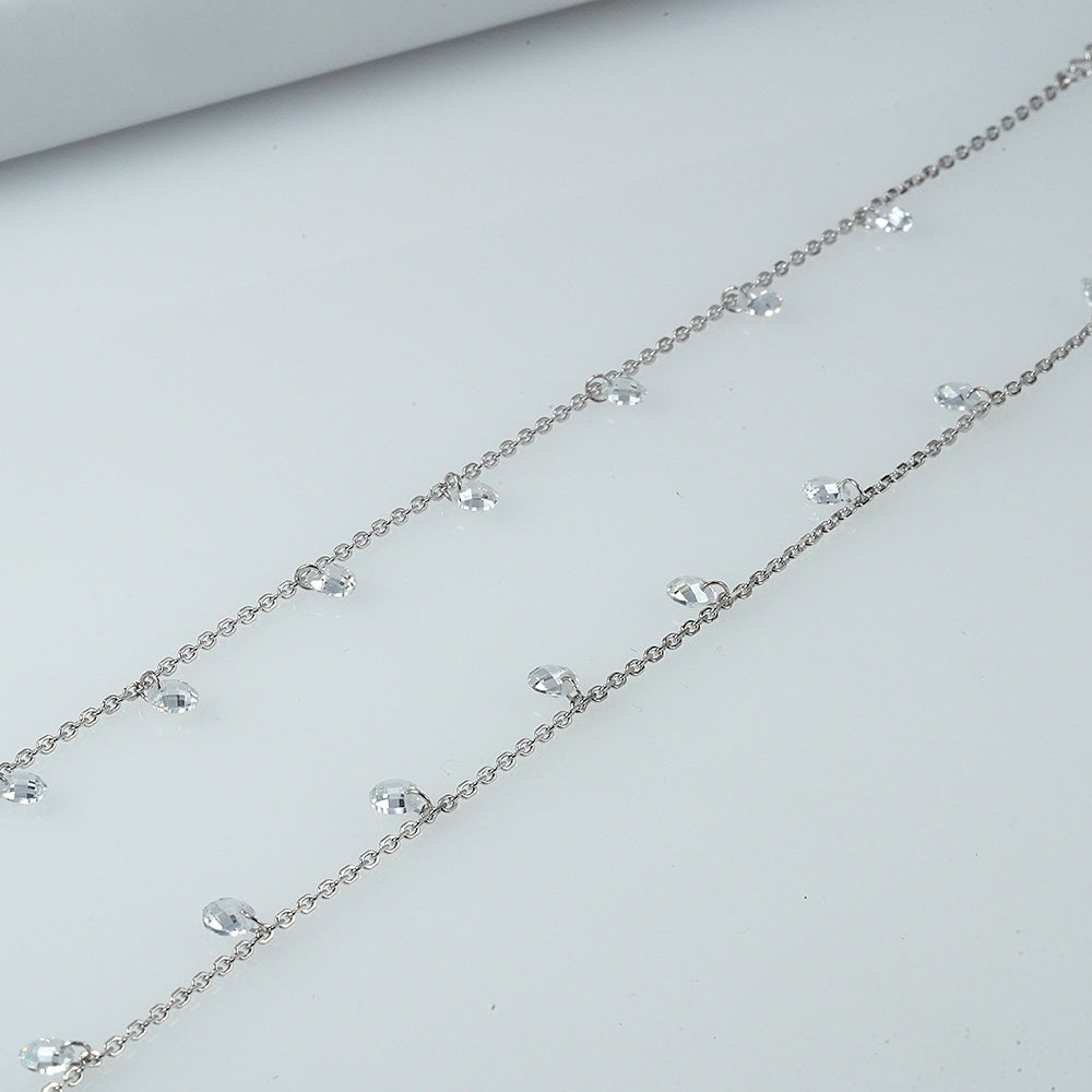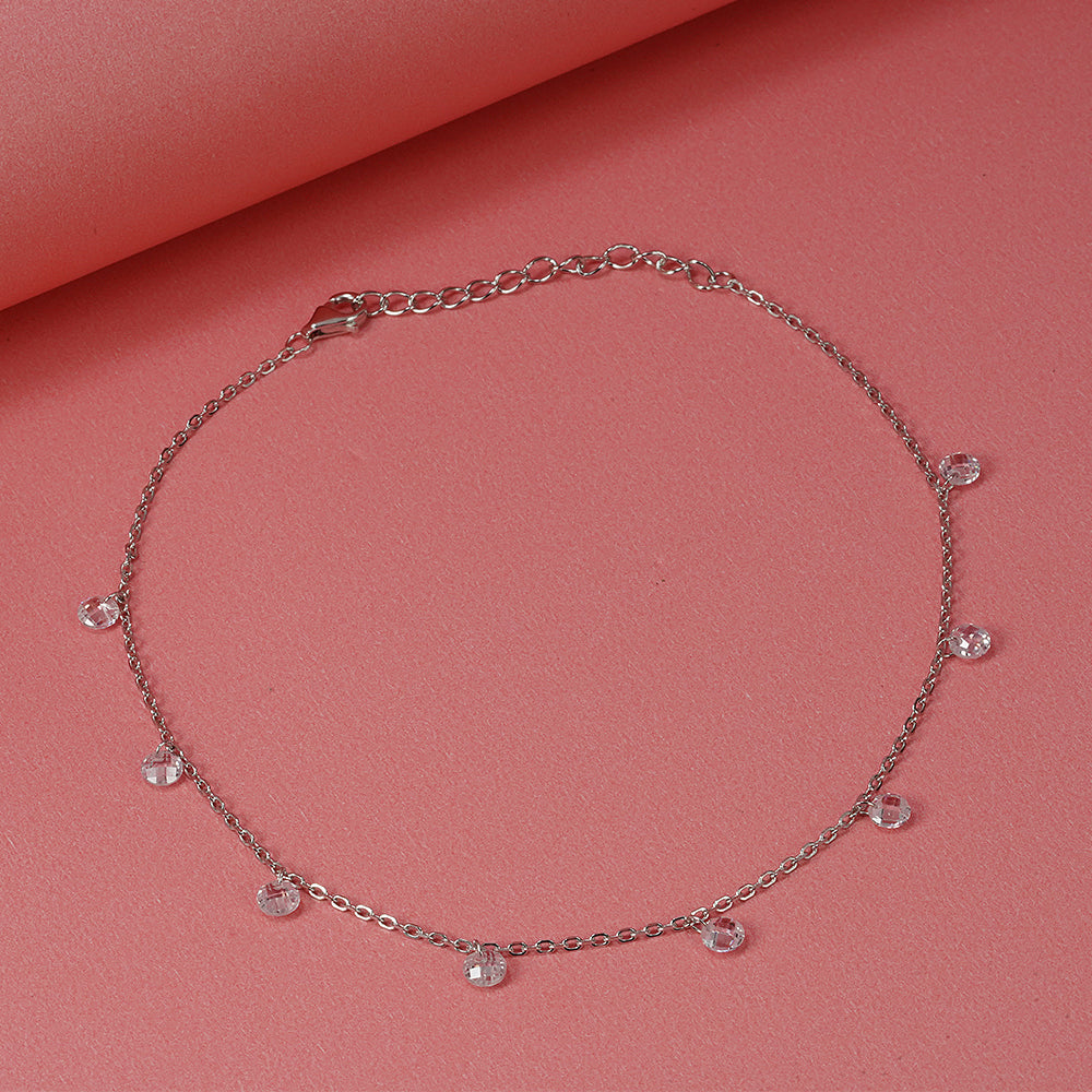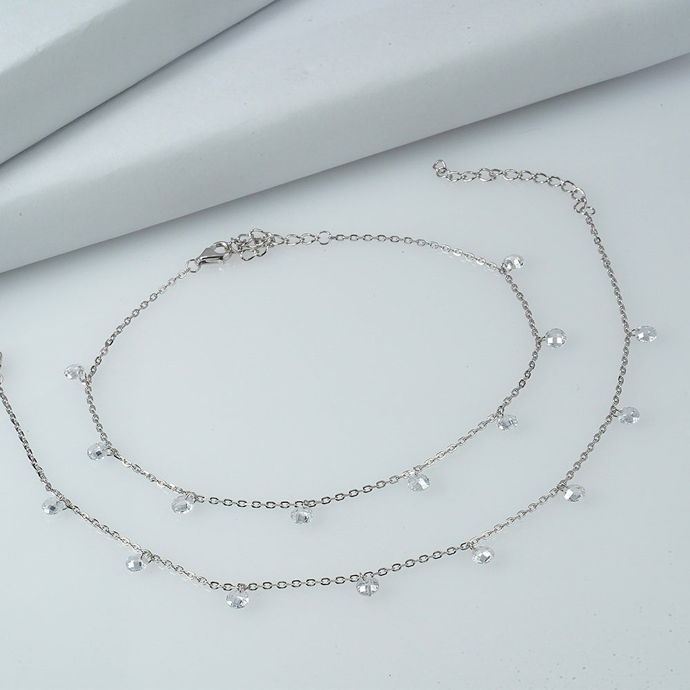 Sleek and sophisticated sterling silver anklet with a dazzling zircon drop charm.