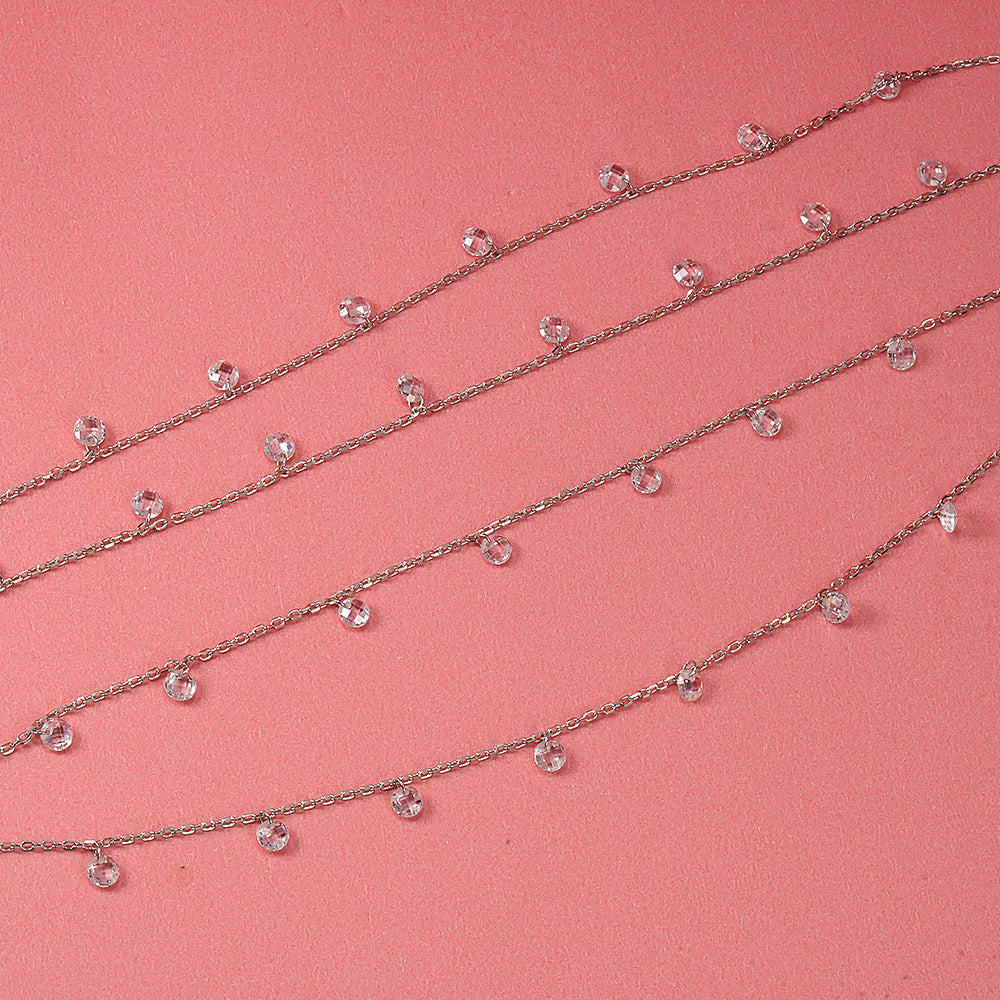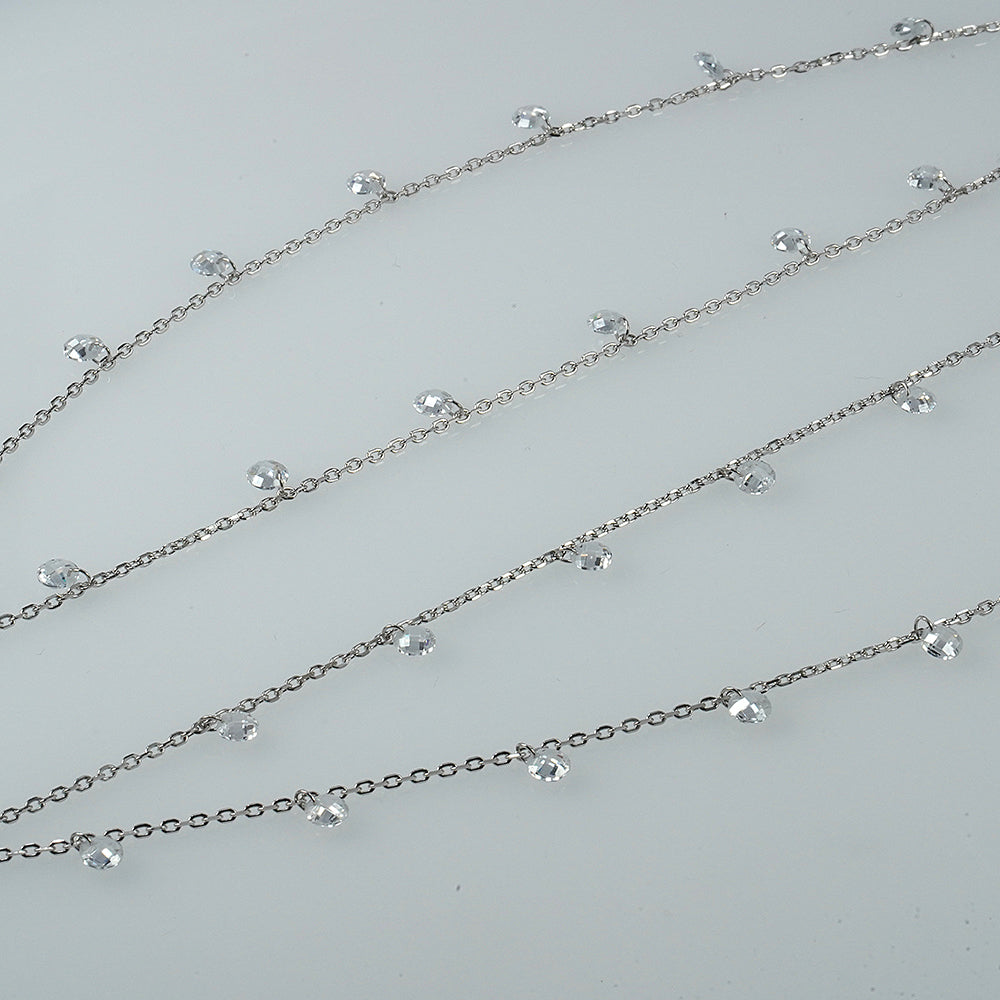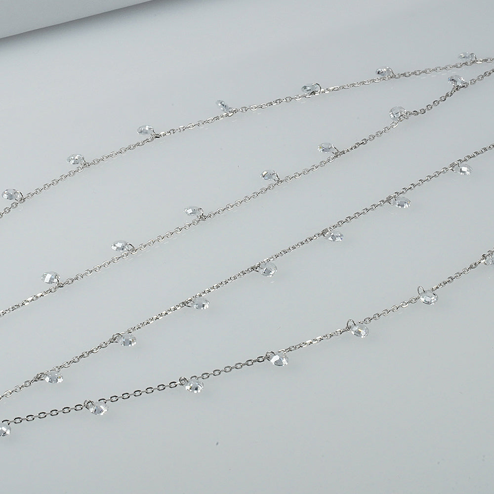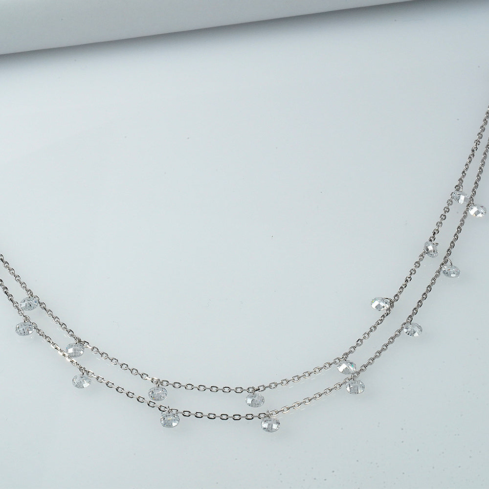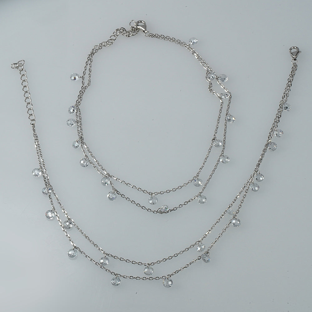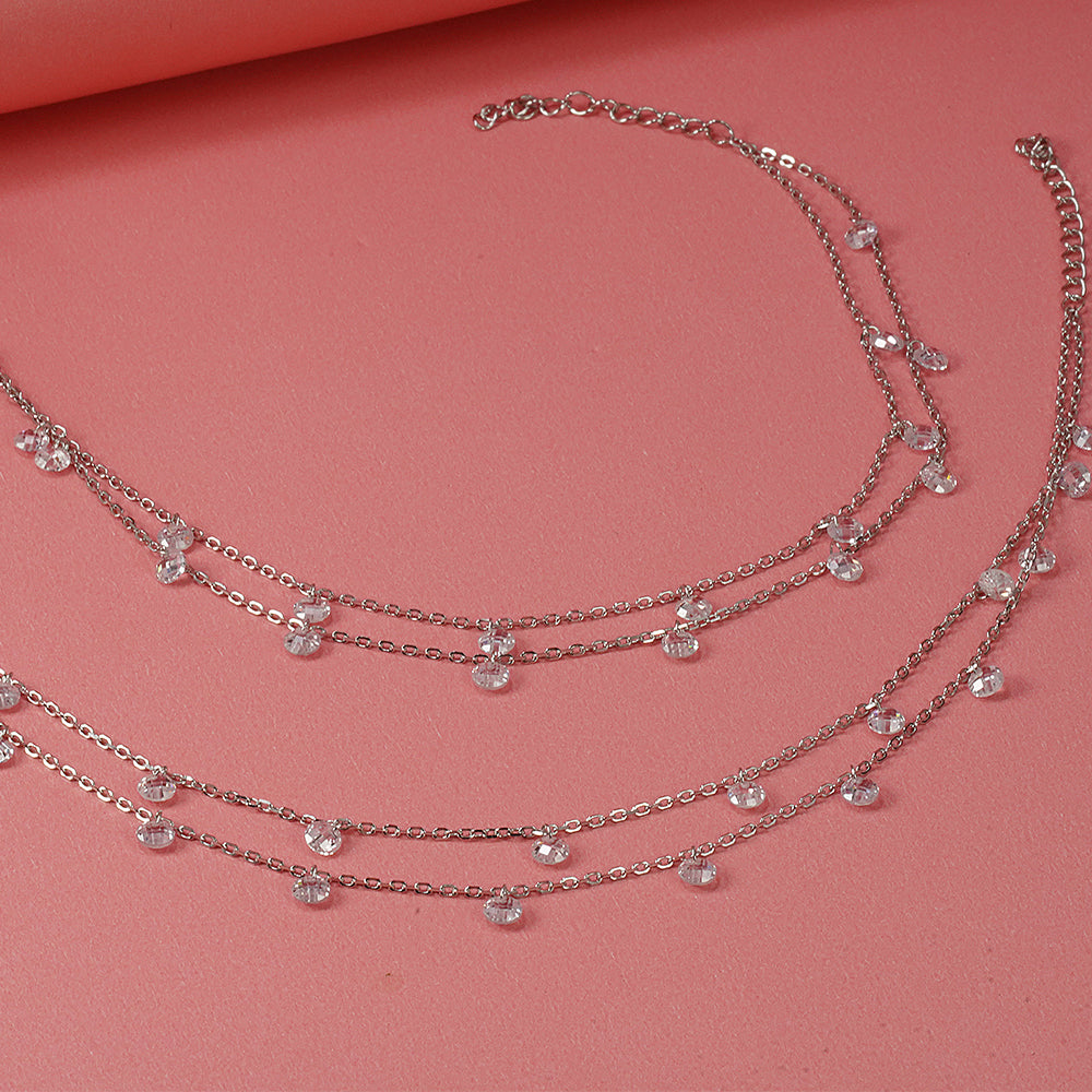 Silver Double-Layer Zircon Drop Anklet