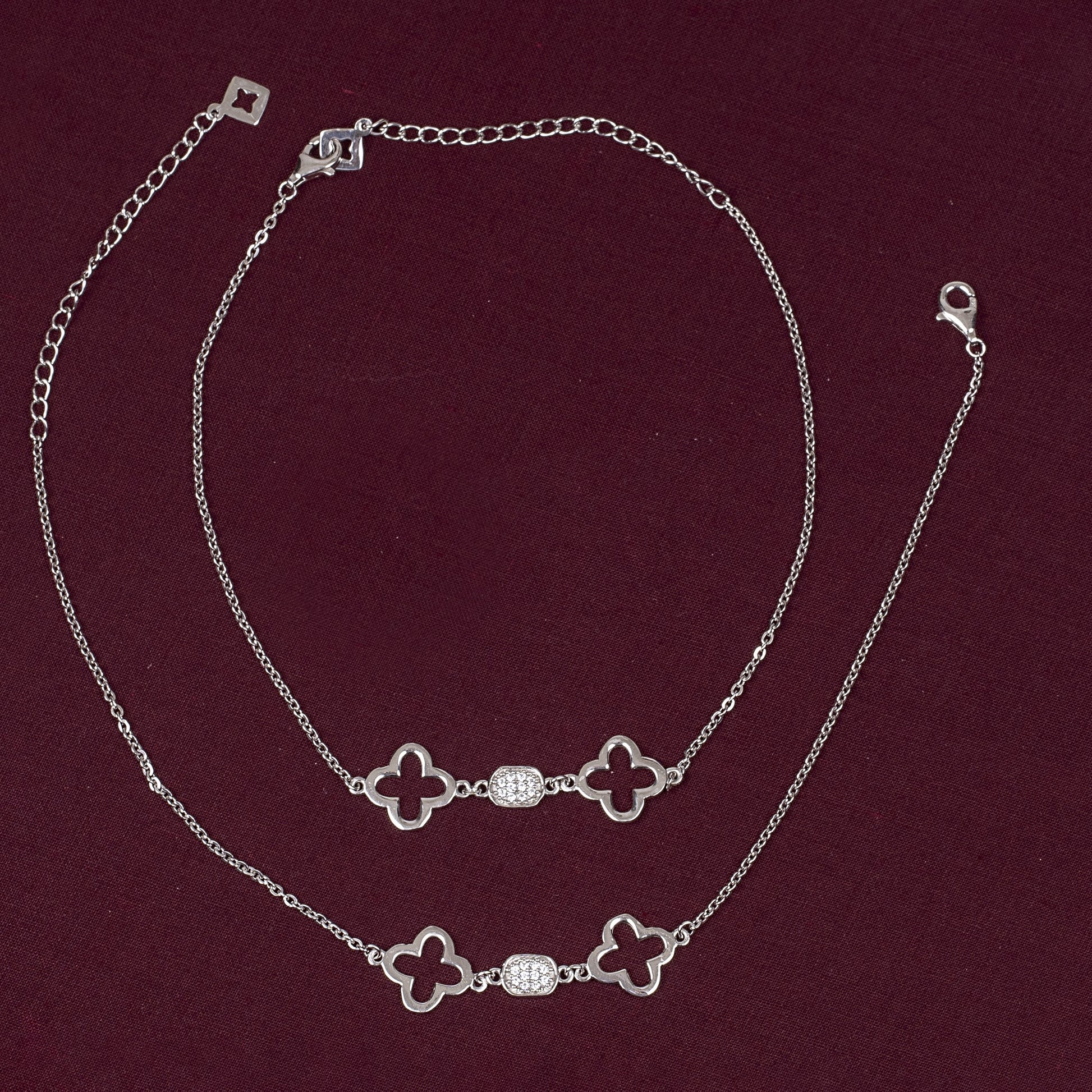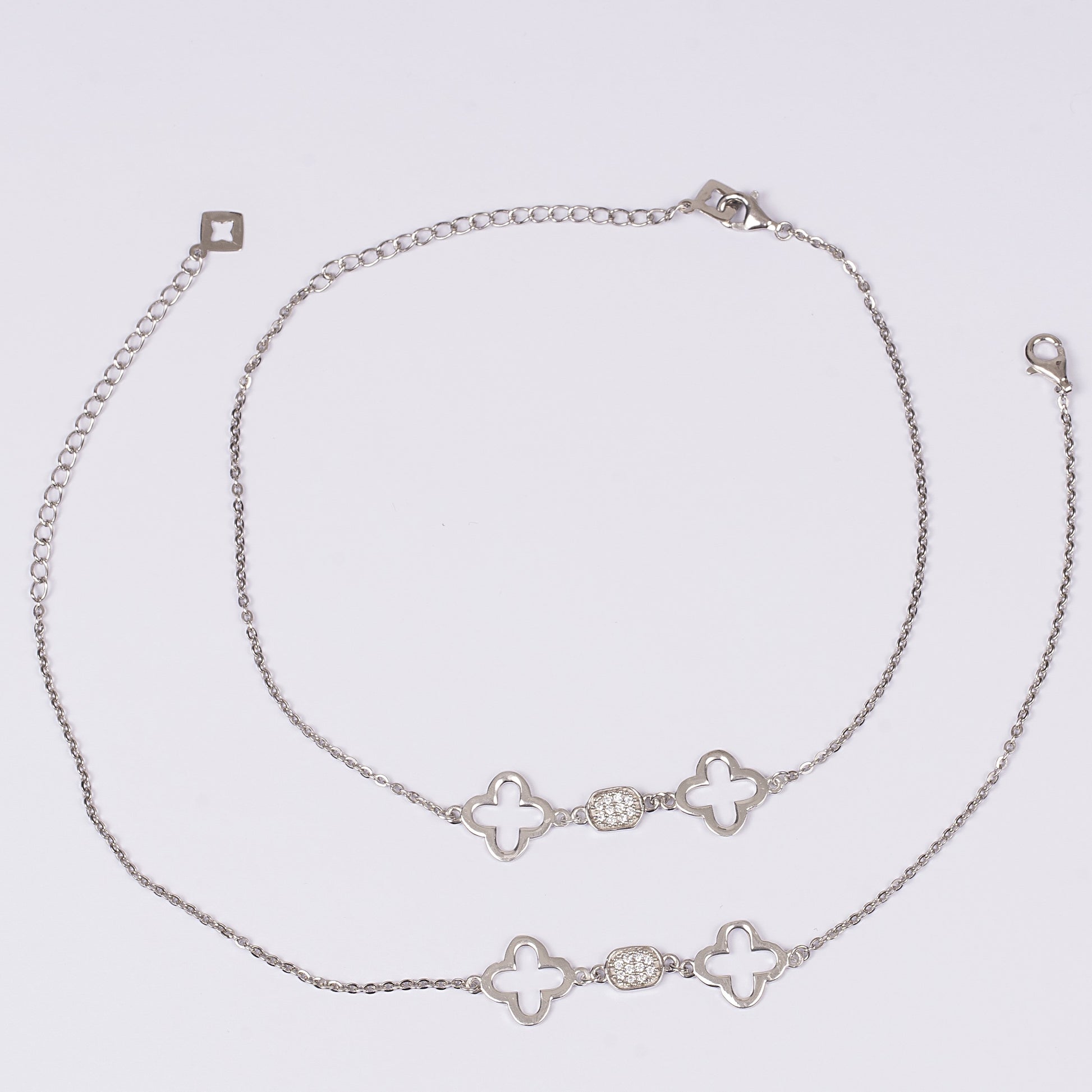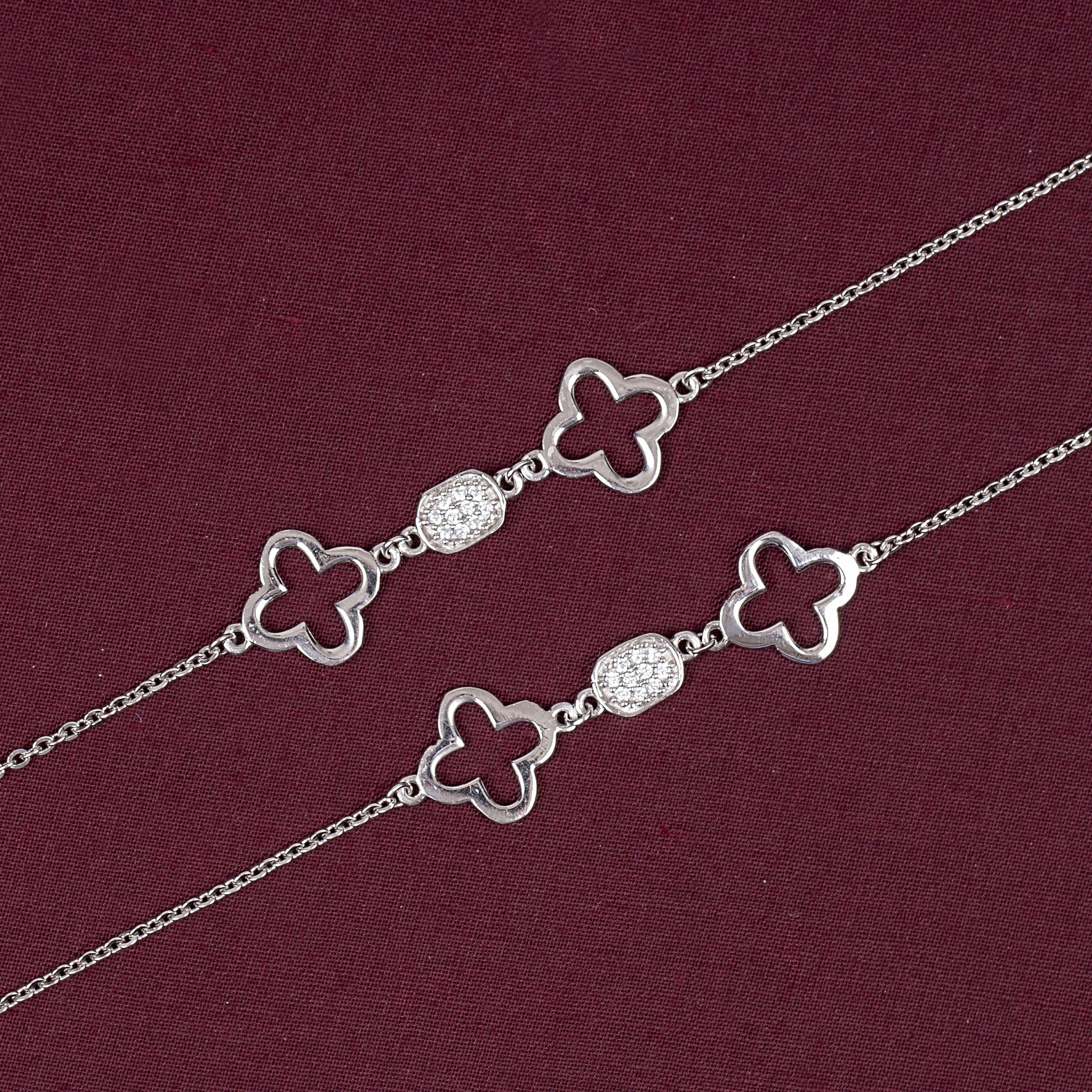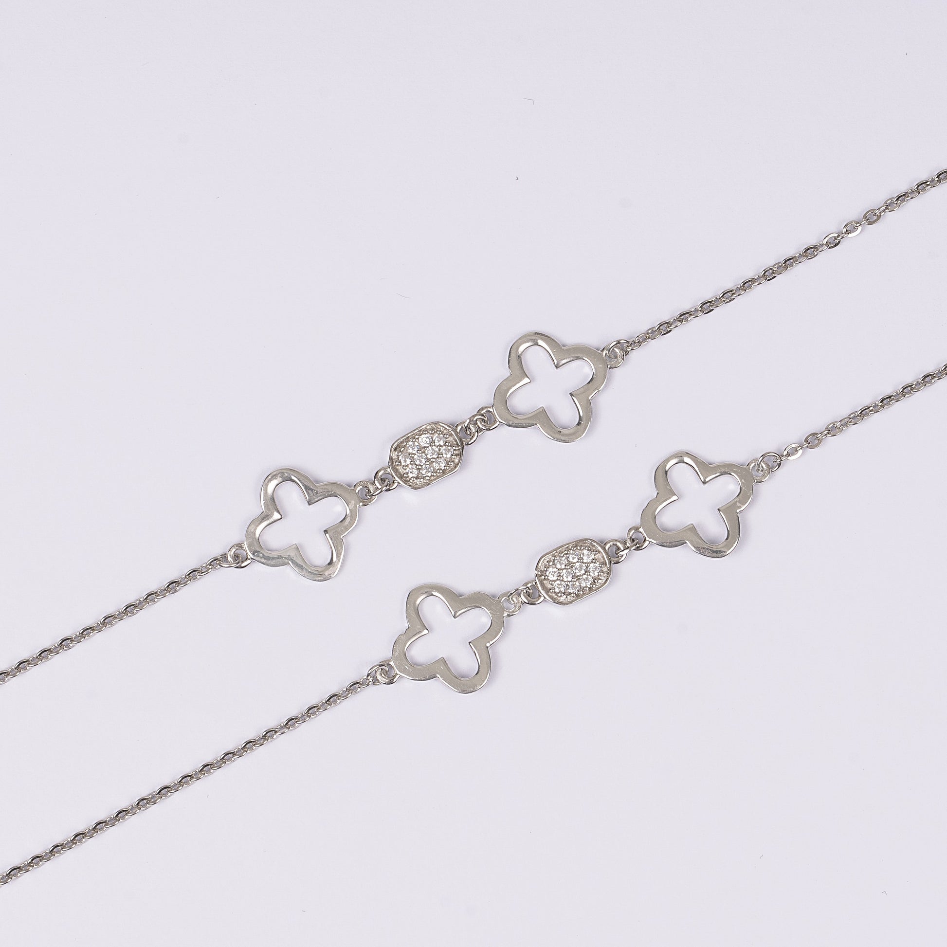 STERLING SILVER HALLMARKED ELEGANT DESIGNER WOMEN ZIRCON ANKLET WITH GEOMETRIC DESIGN