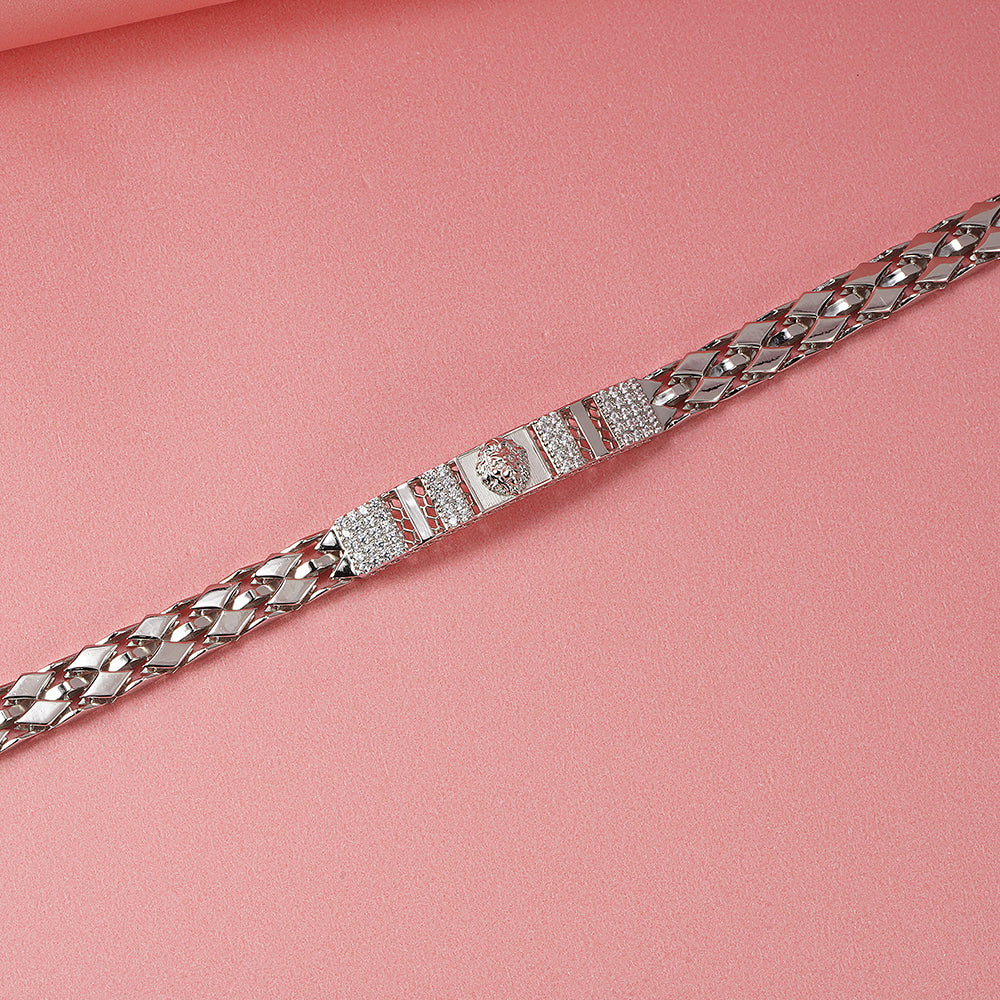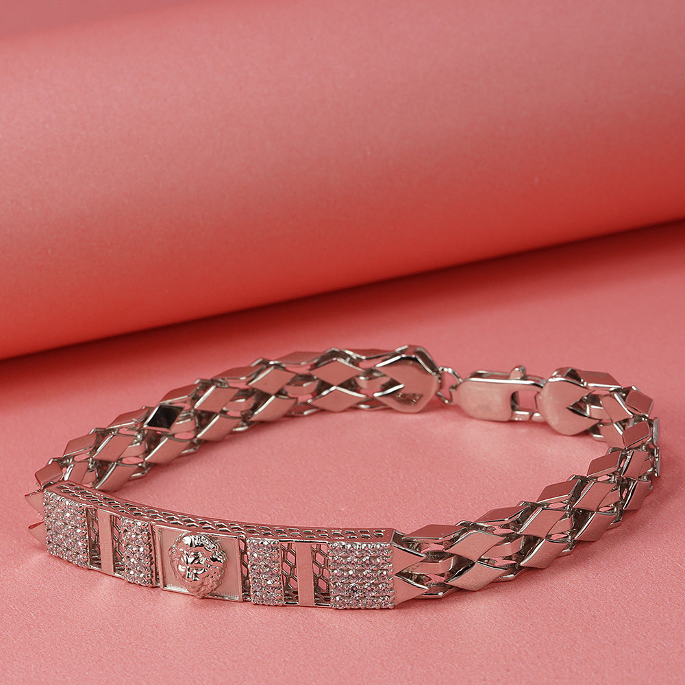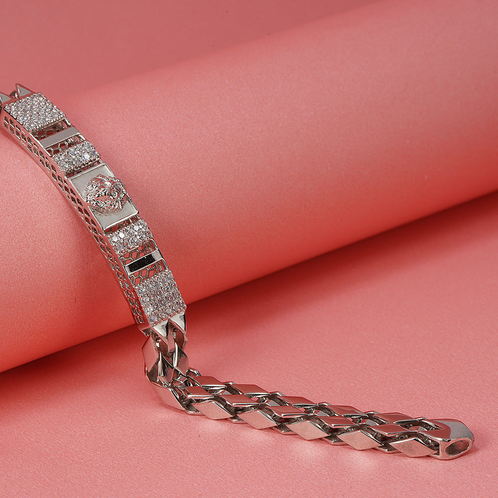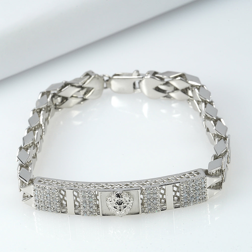 SILVER STUDDED WITH ZIRCON AND LION MOTIF BRACELET FOR HIM