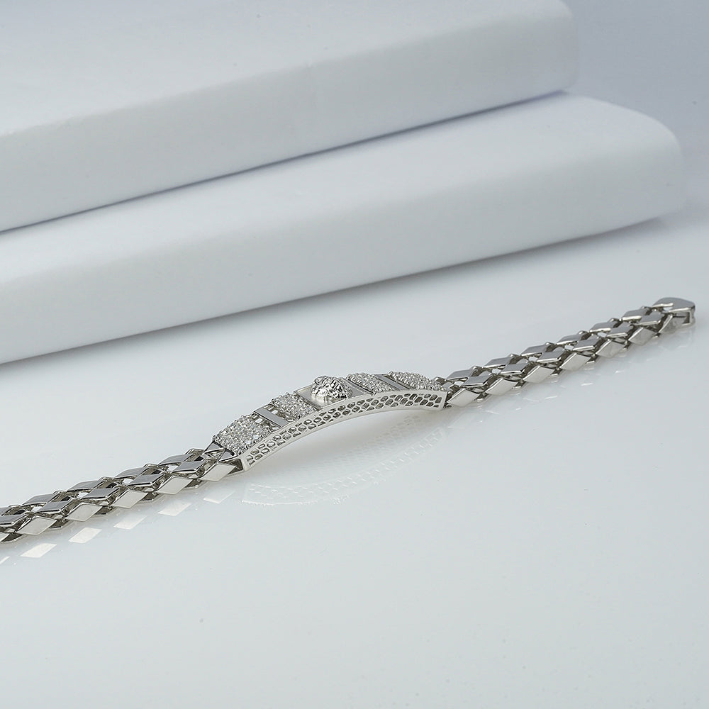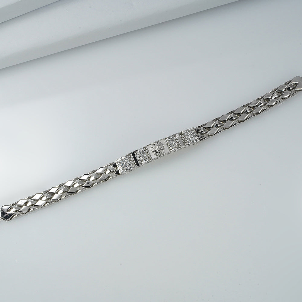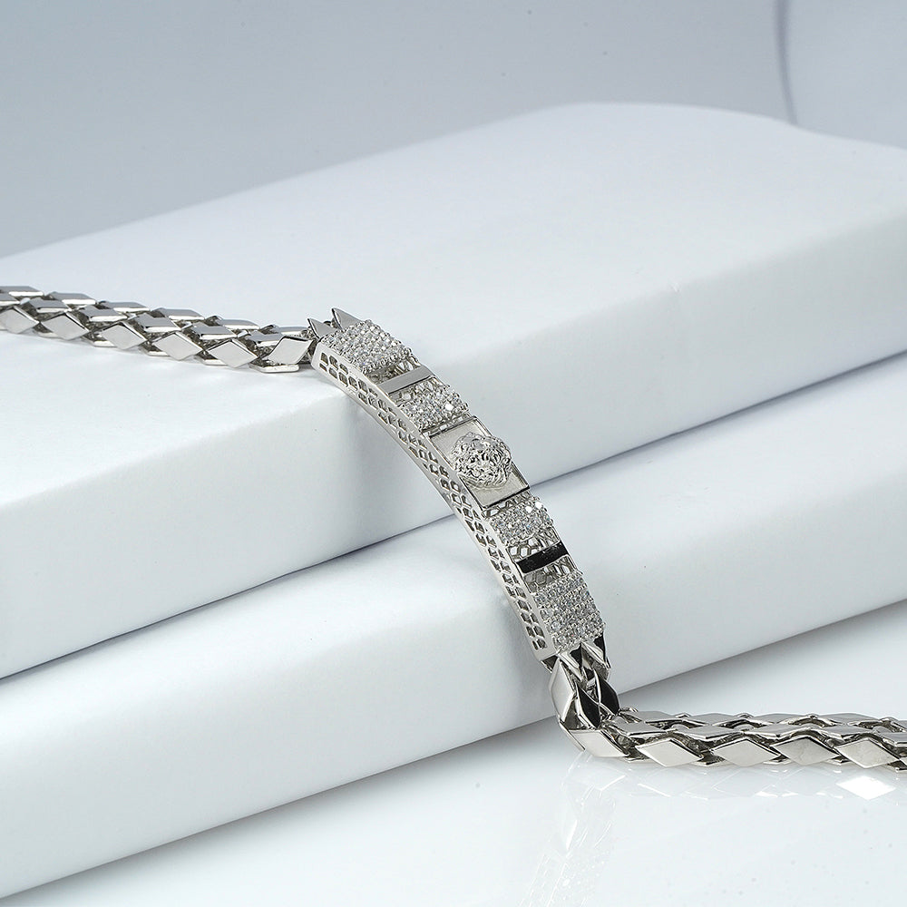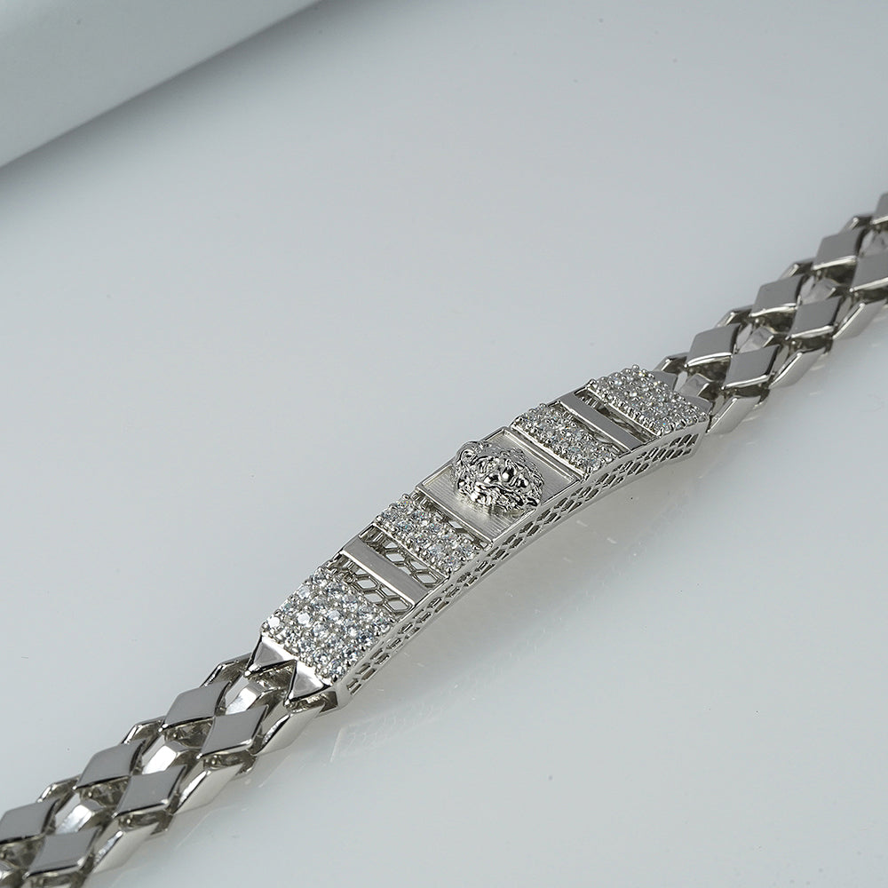 SILVER STUDDED WITH ZIRCON AND LION MOTIF BRACELET FOR HIM