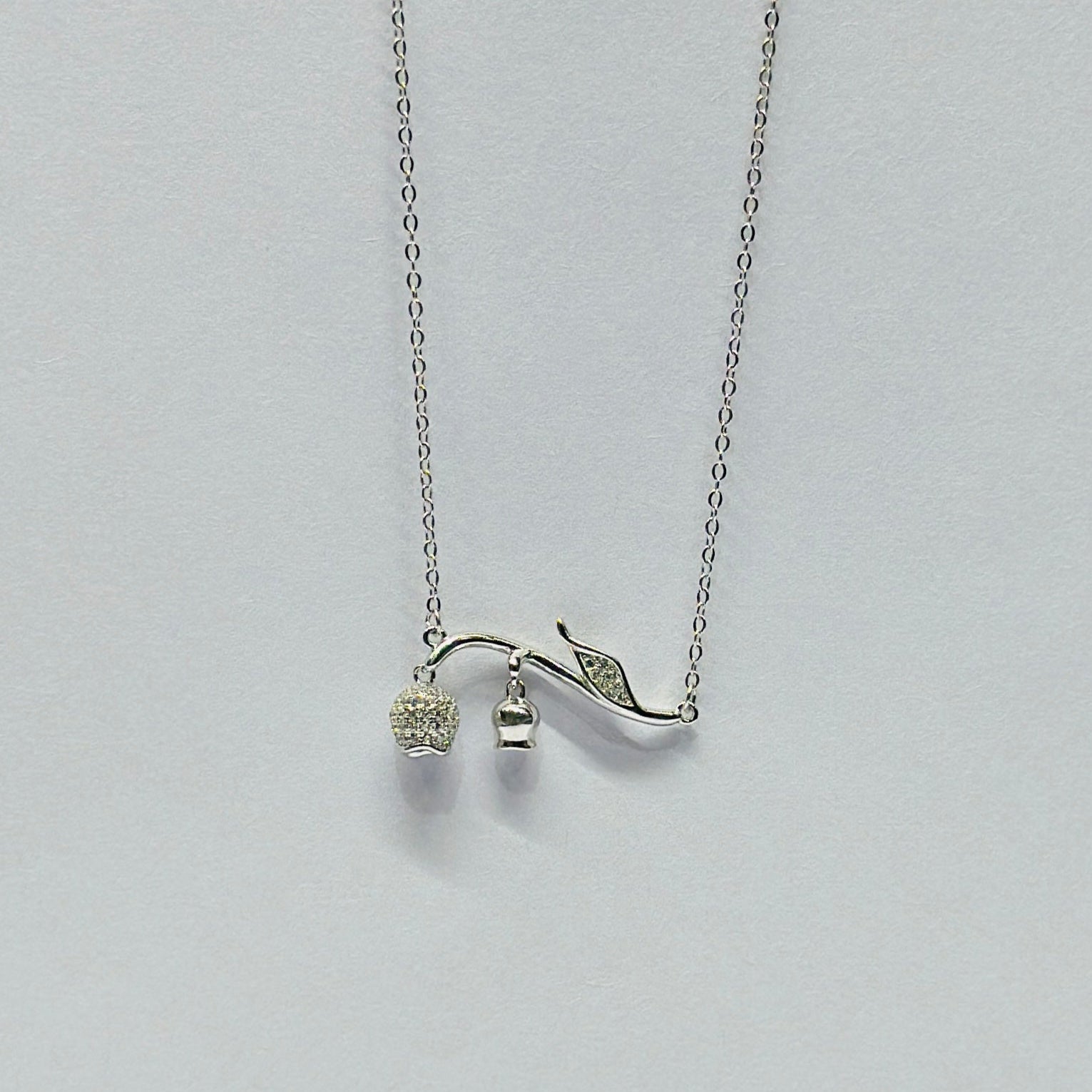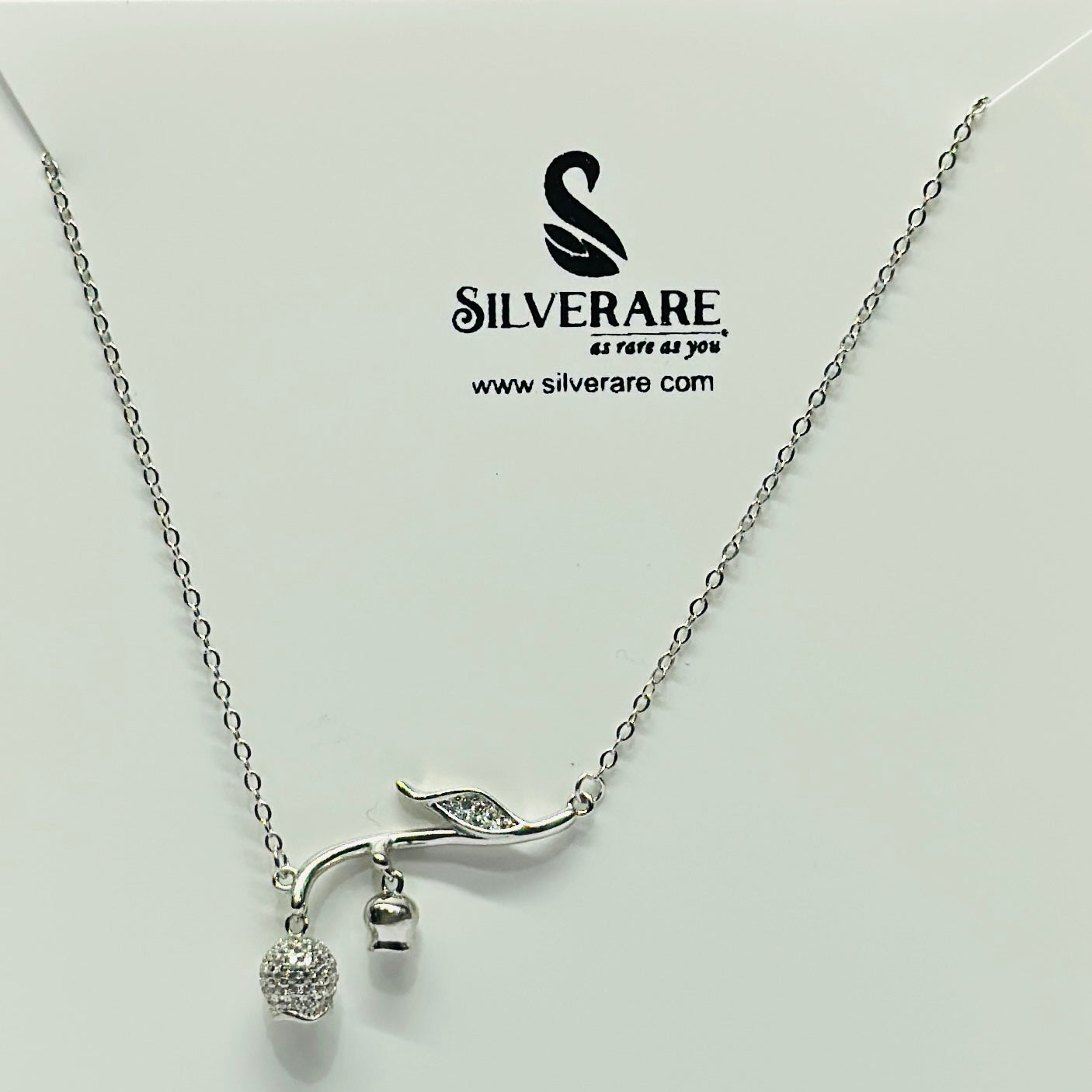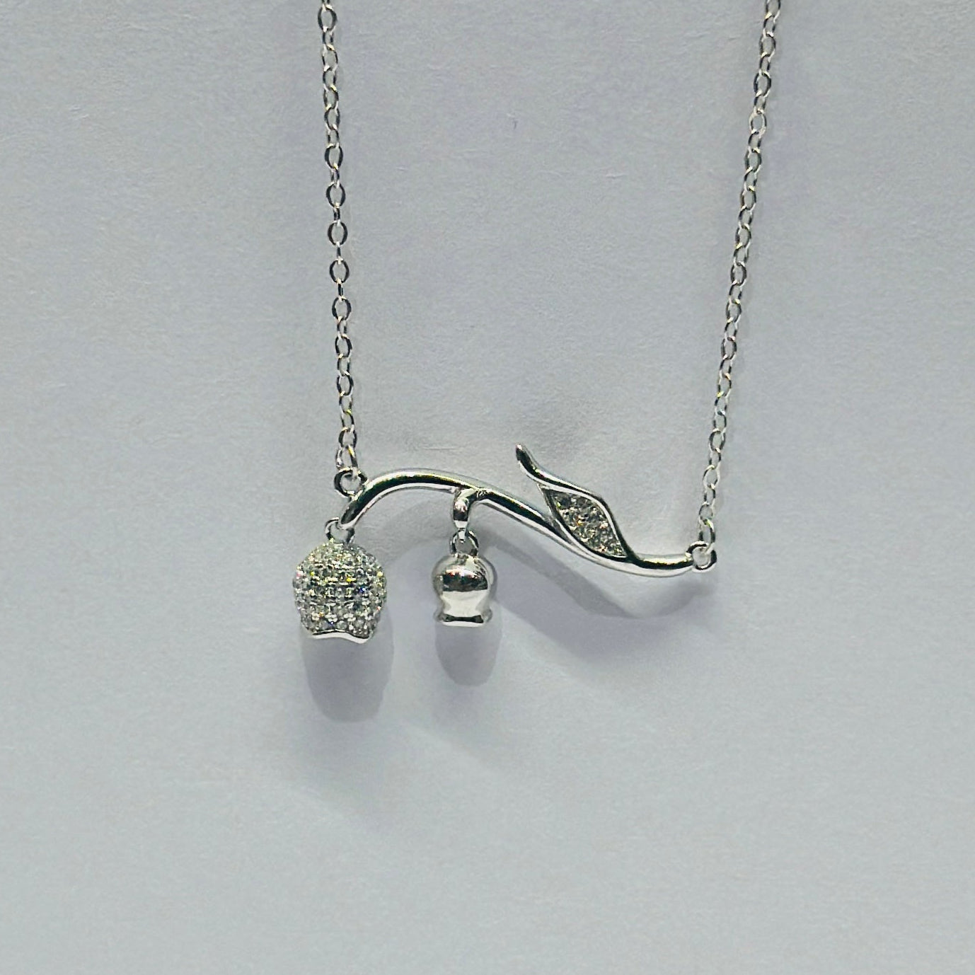 STERLING SILVER HALLMARKED ZIRCON UPSIDE-DOWN HANGING TULIP PENDENT WITH CHAIN