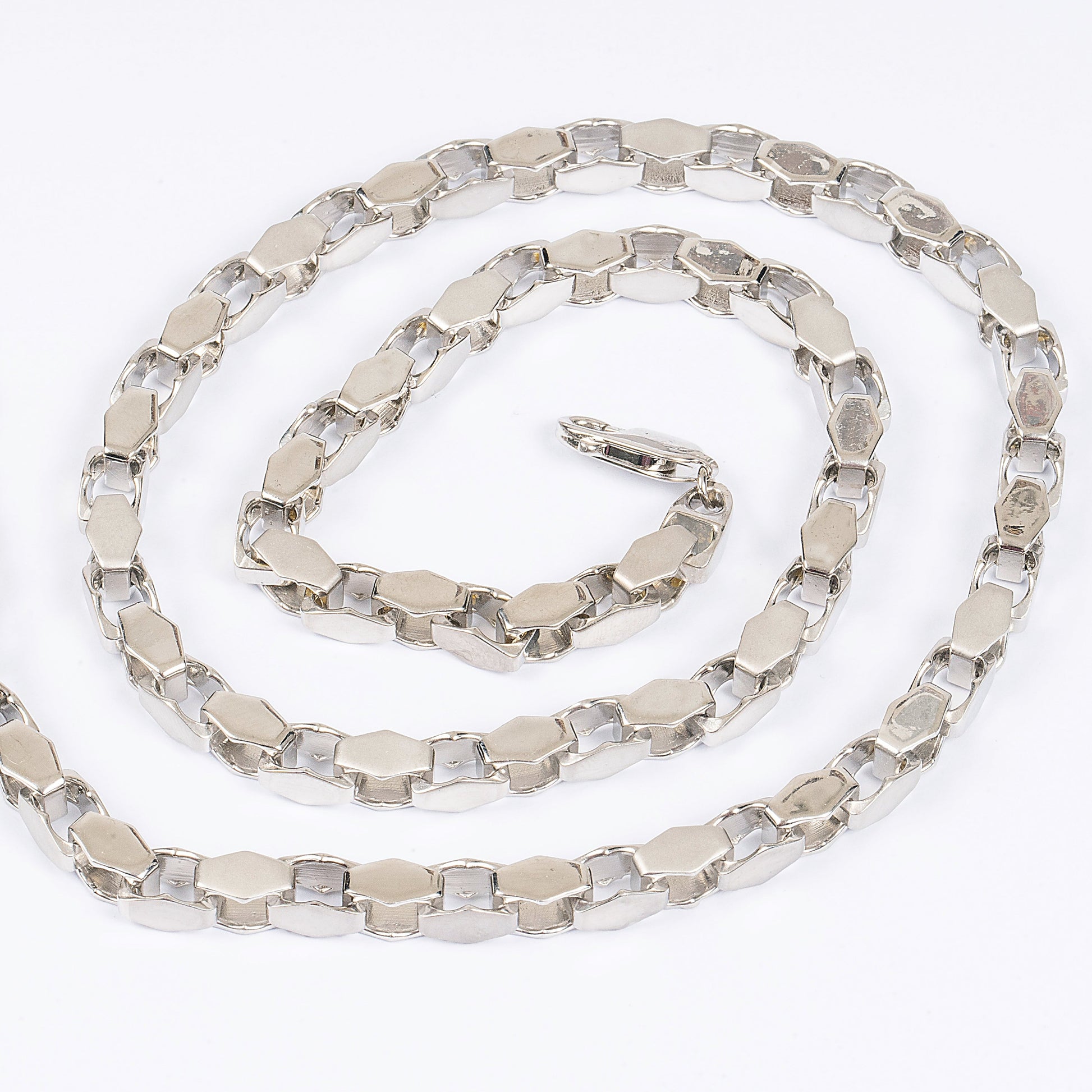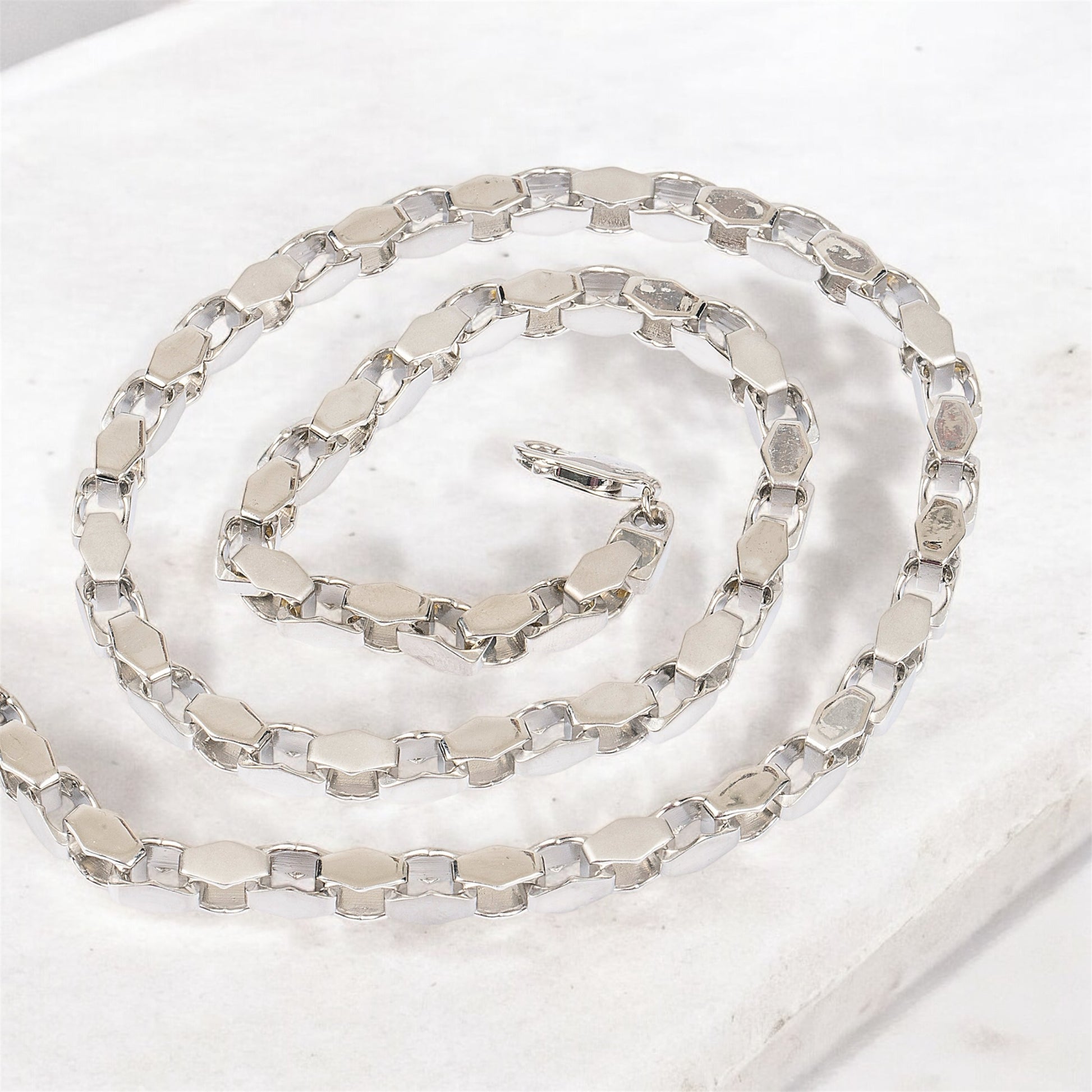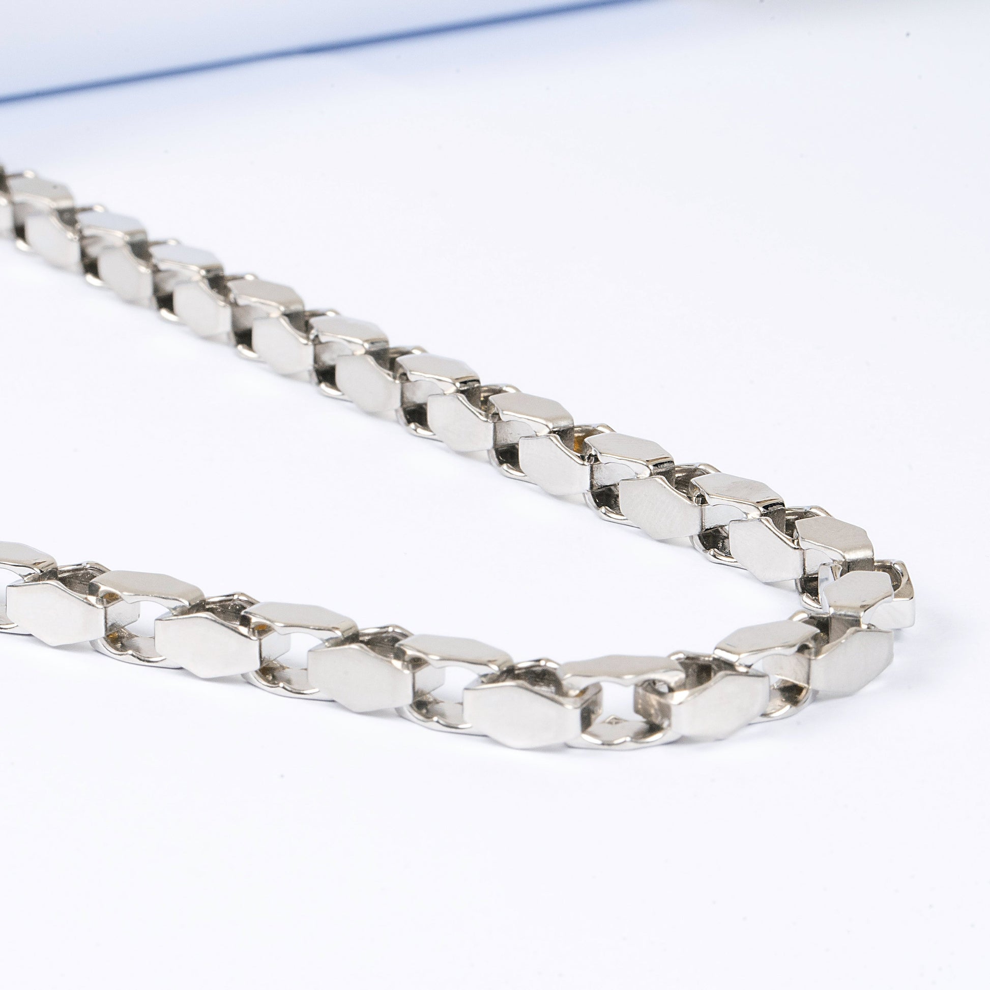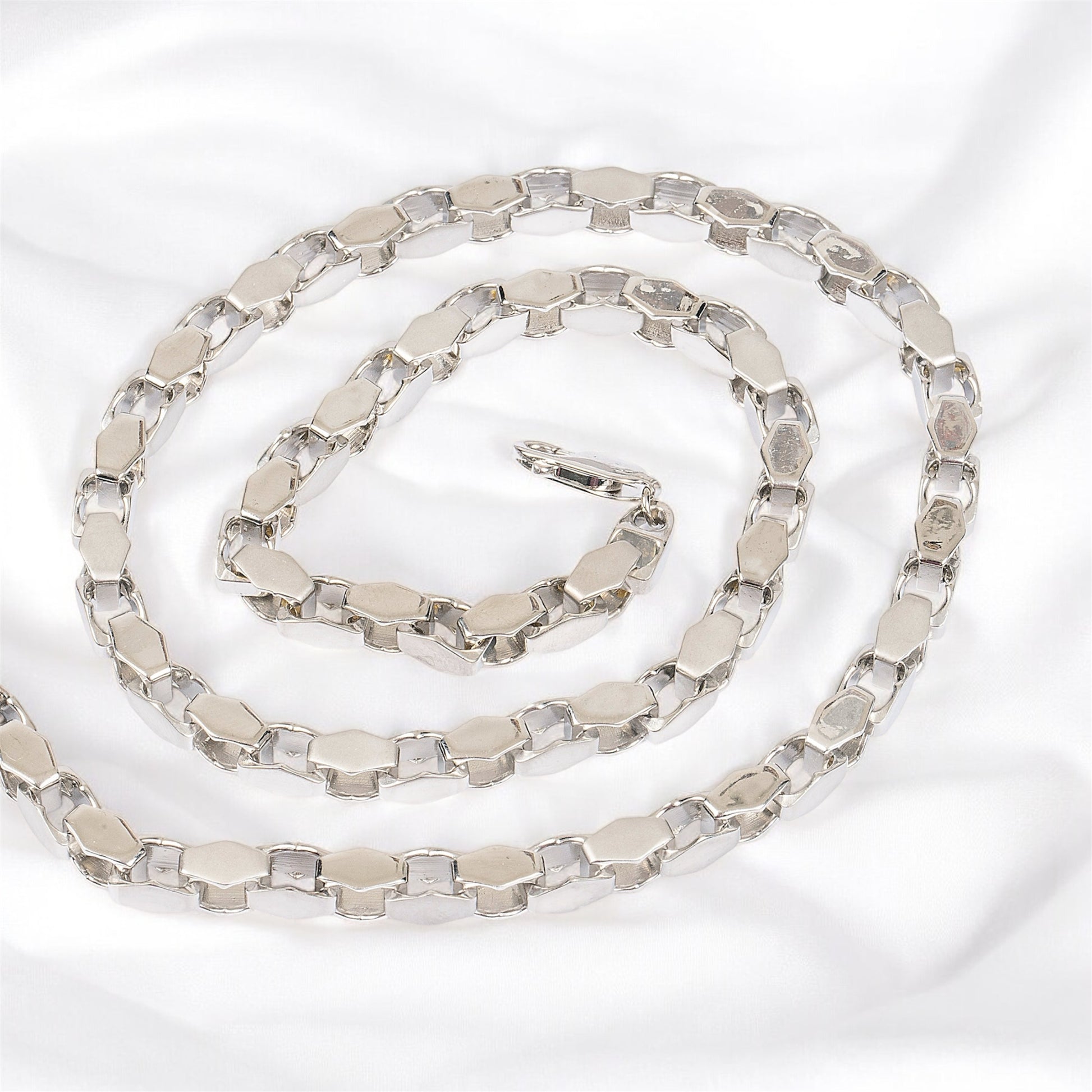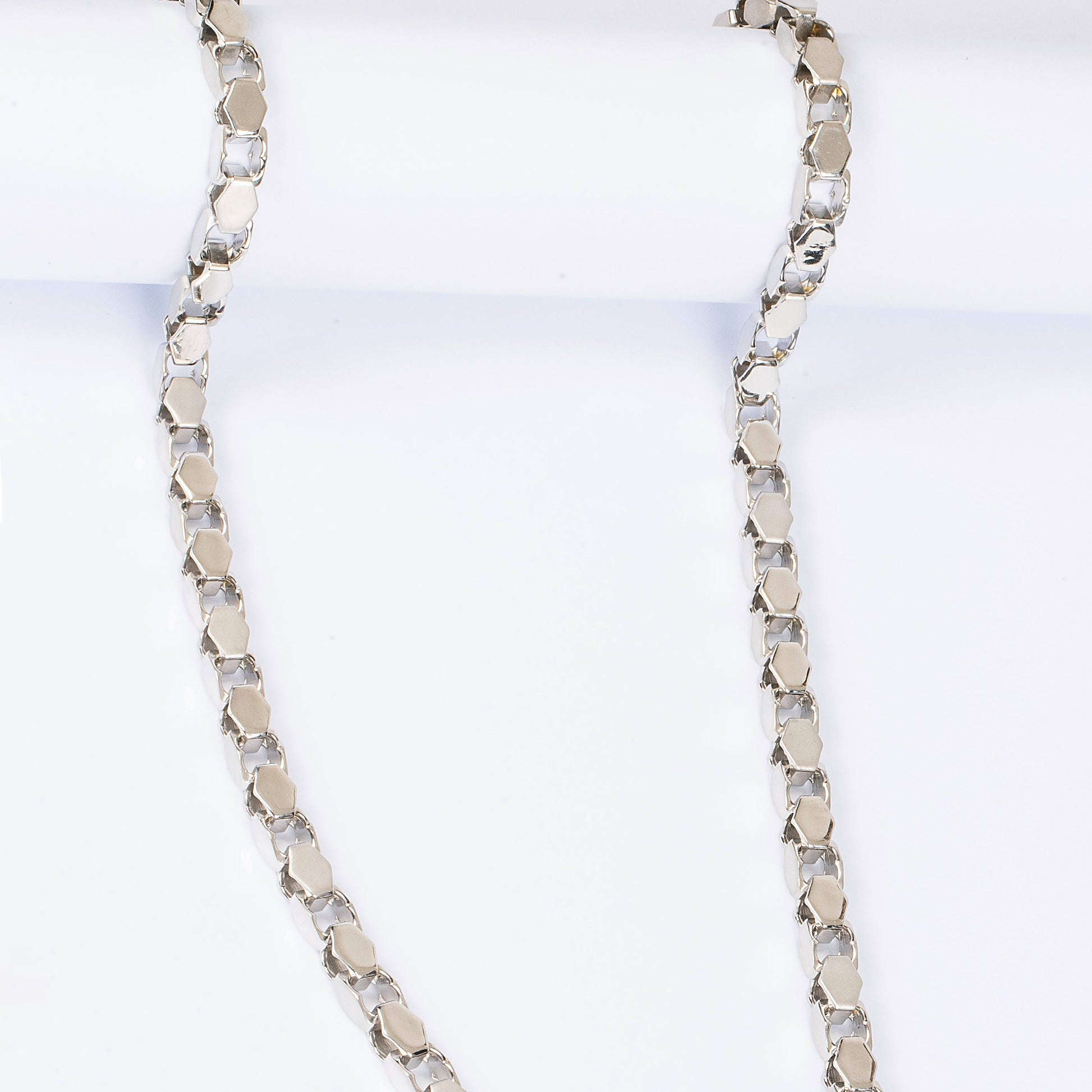 Sterling Silver Hexagon Matte Finish Men’s Chain