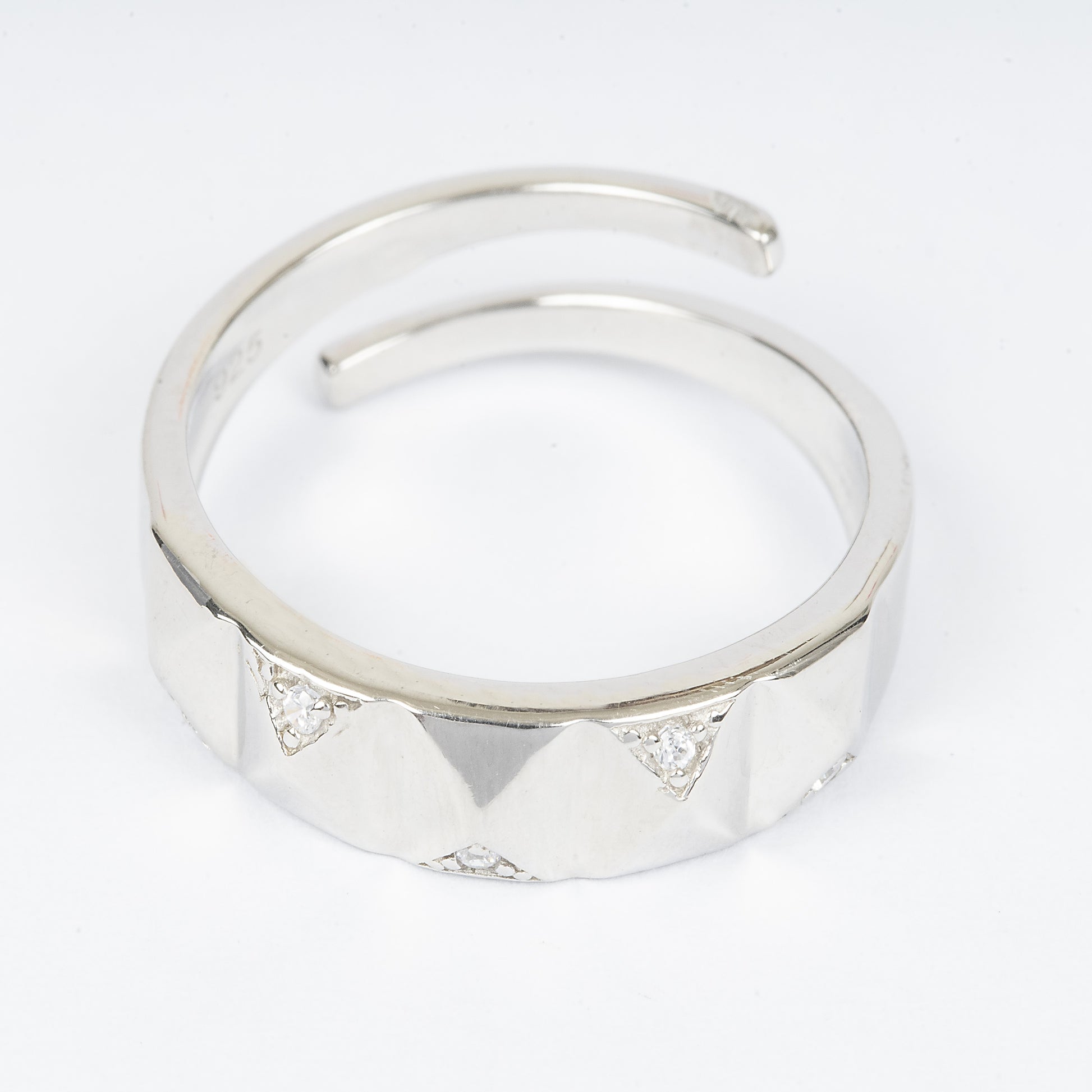 A sterling silver zigzag-patterned couple ring studded with zircon stones and featuring an adjustable design is a stylish and versatile choice for couples. The 92.5% sterling silver base offers durability and a classic look, while the zigzag pattern adds a modern and eye-catching element to the design.