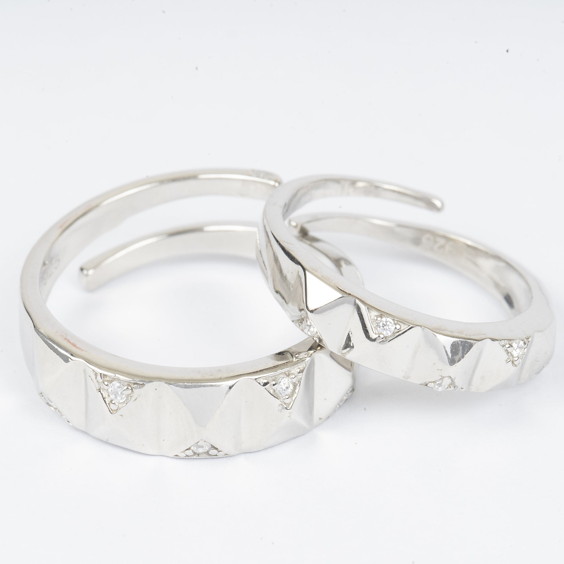 Overall, a sterling silver zigzag-patterned couple ring studded with zircon stones and featuring an adjustable design is a timeless and meaningful symbol of love and commitment. Its combination of quality craftsmanship, elegant design, and practicality makes it a perfect choice for couples looking to celebrate their relationship in style.