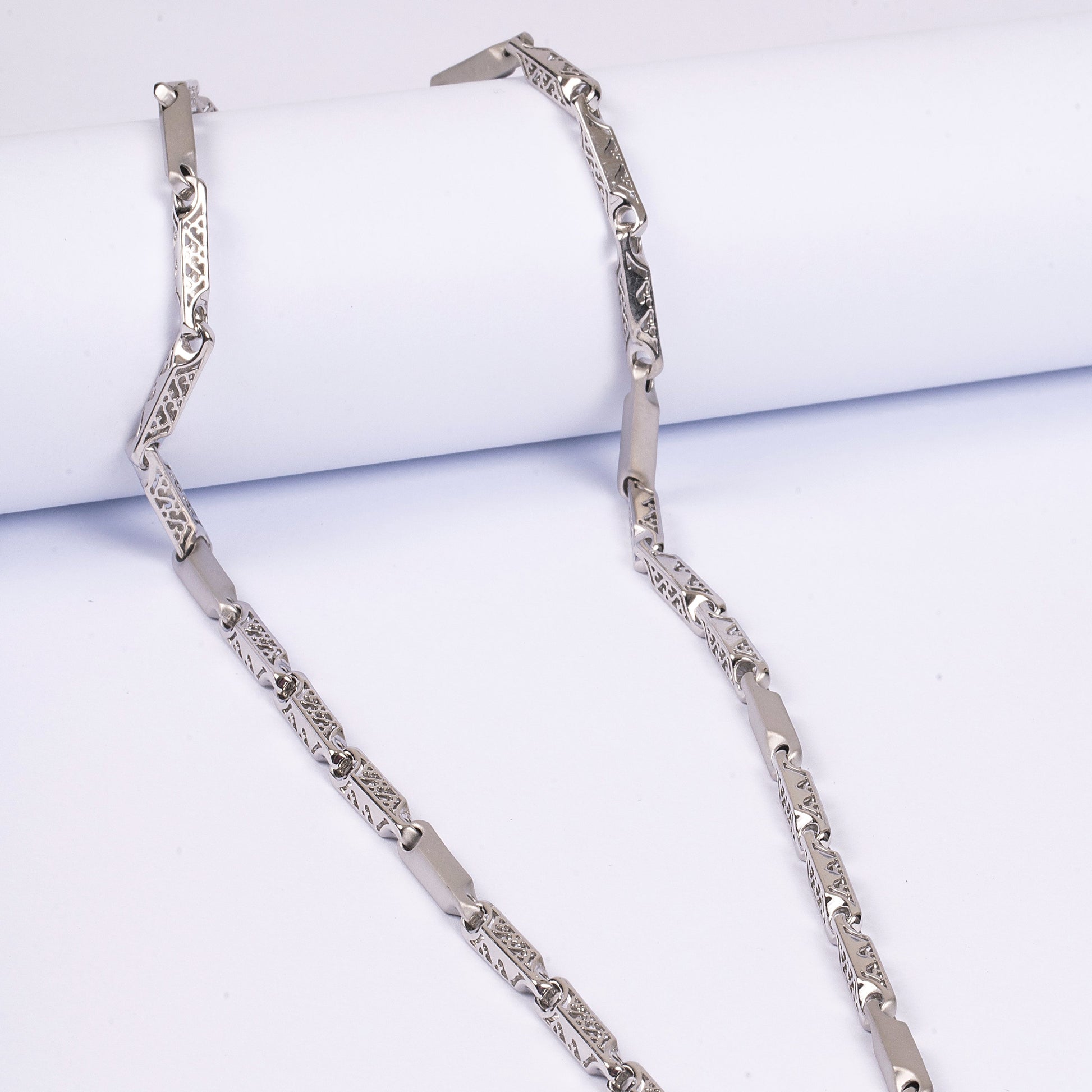Sterling Silver CNC Rhodium & Matte Finish Men’s Chain