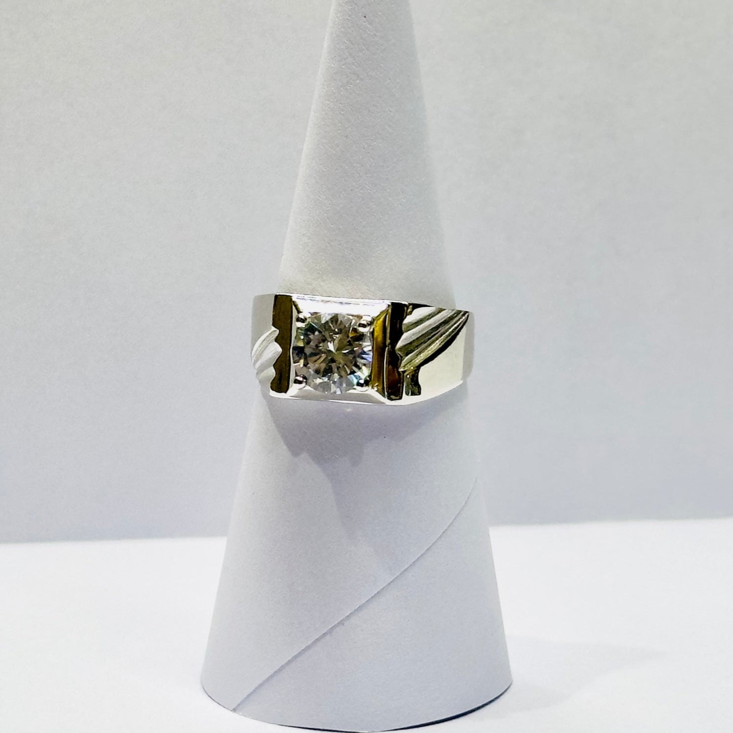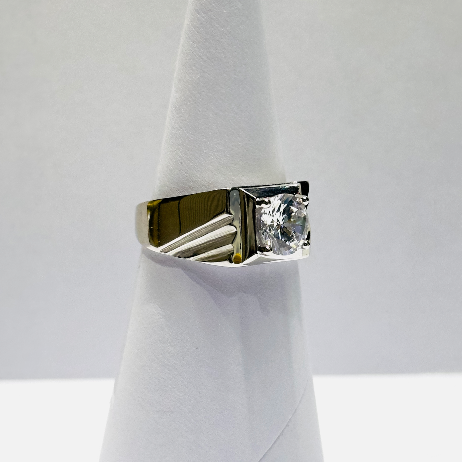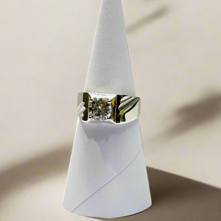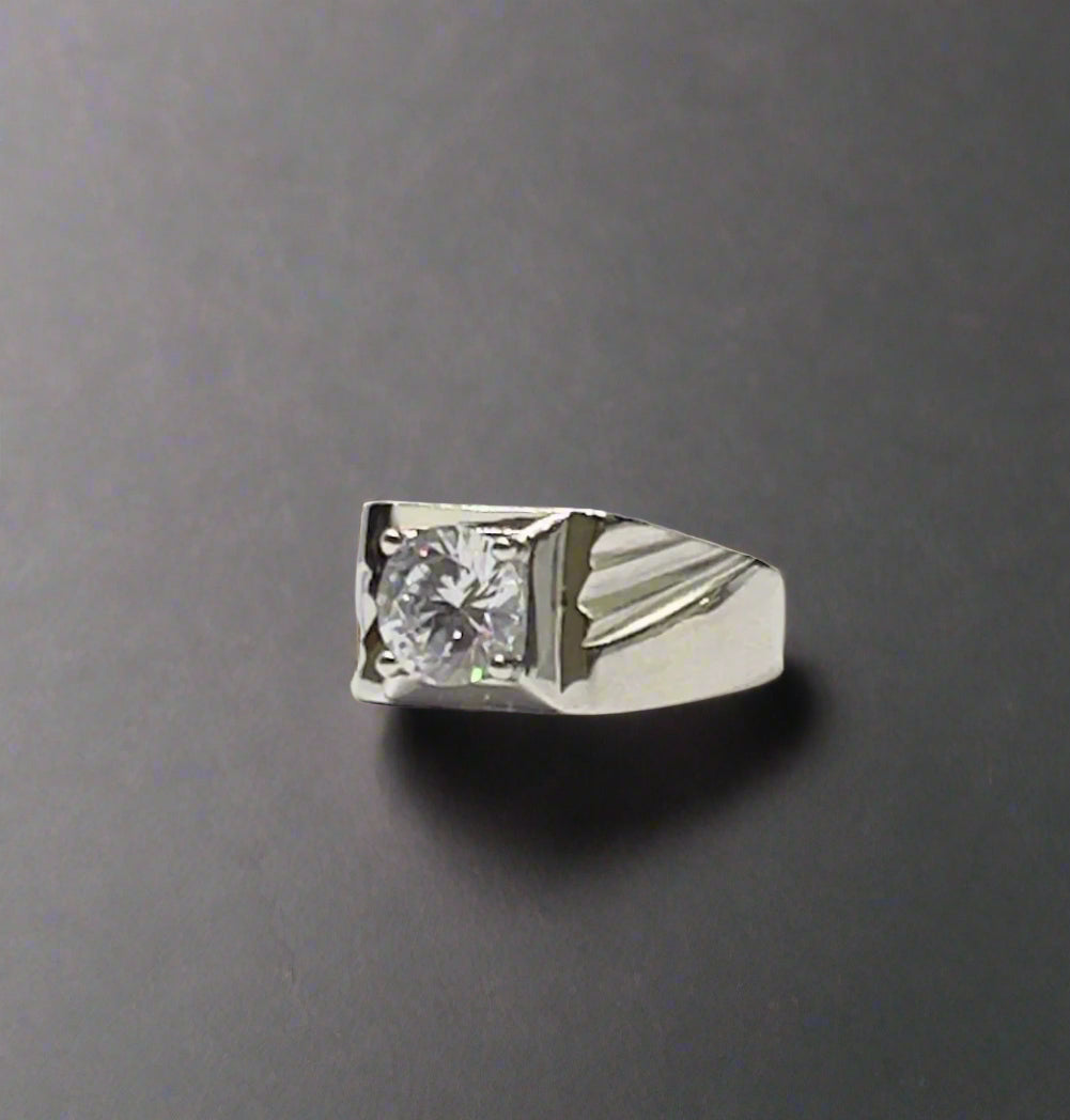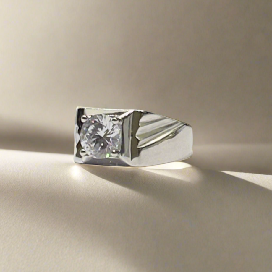 High-Finish Sterling Silver Zircon Solitaire Ring