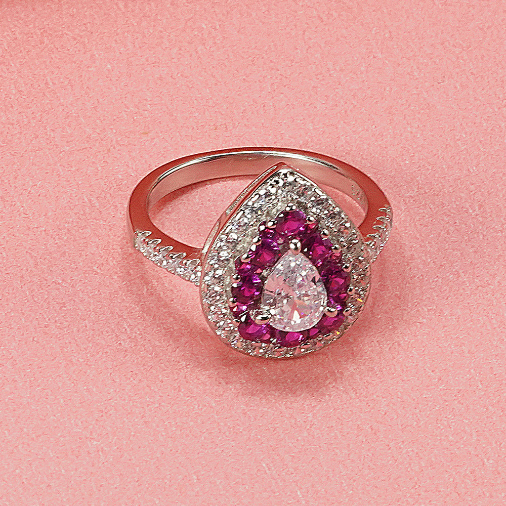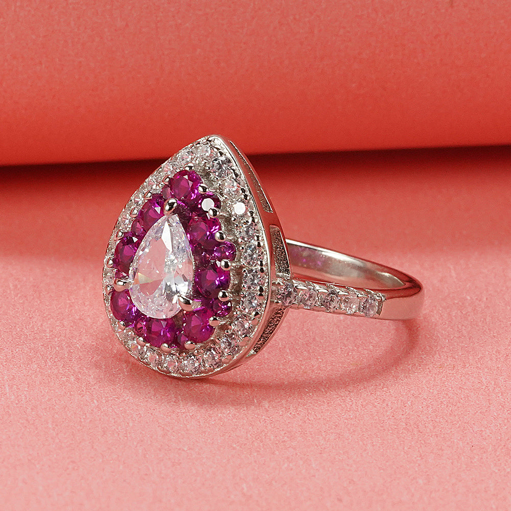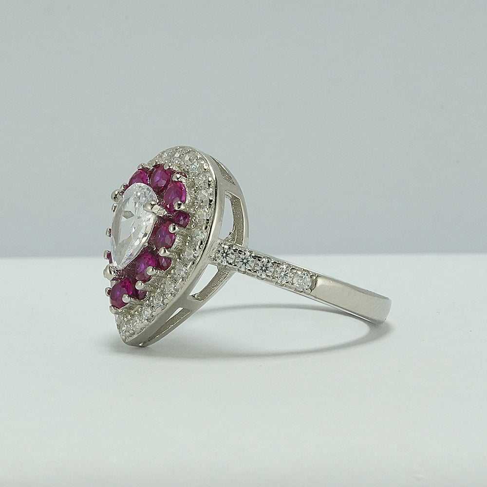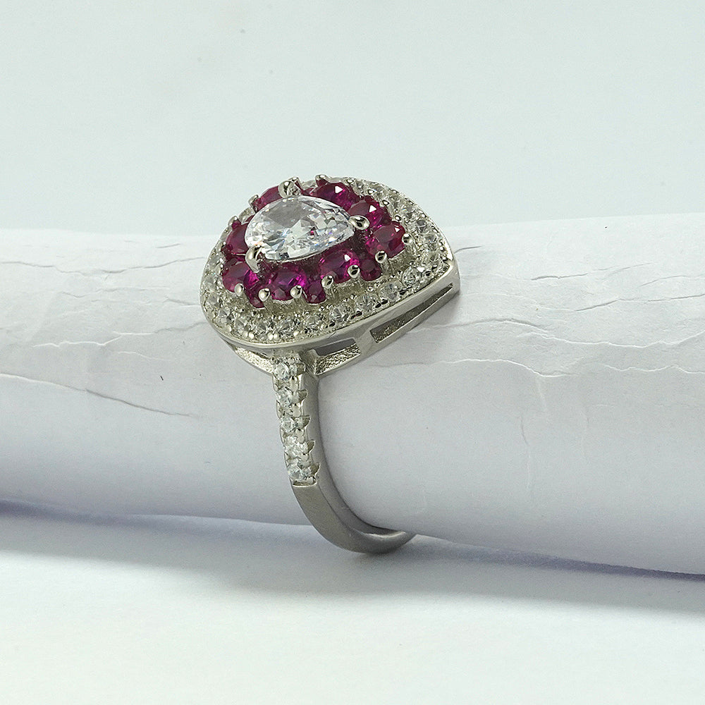 Silver Pear-Shaped Zircon Cocktail Ring