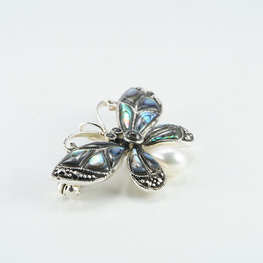 A graceful butterfly design set in sterling silverAdorned with lustrous Mother of Pearl for a...