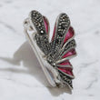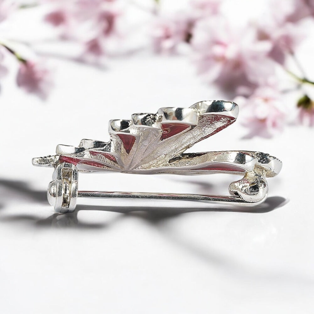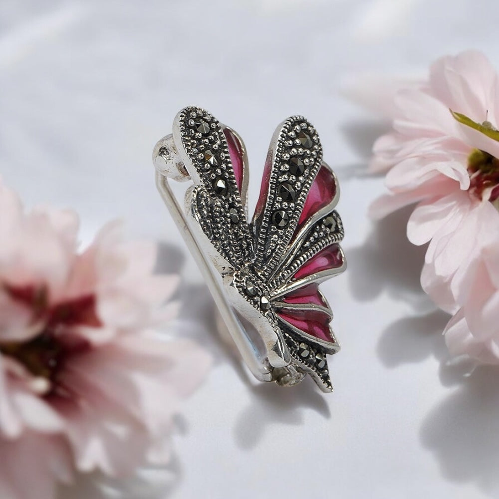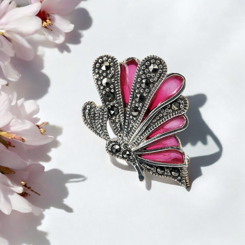 Silver Butterfly Brooch with Pink Enamel Detailing