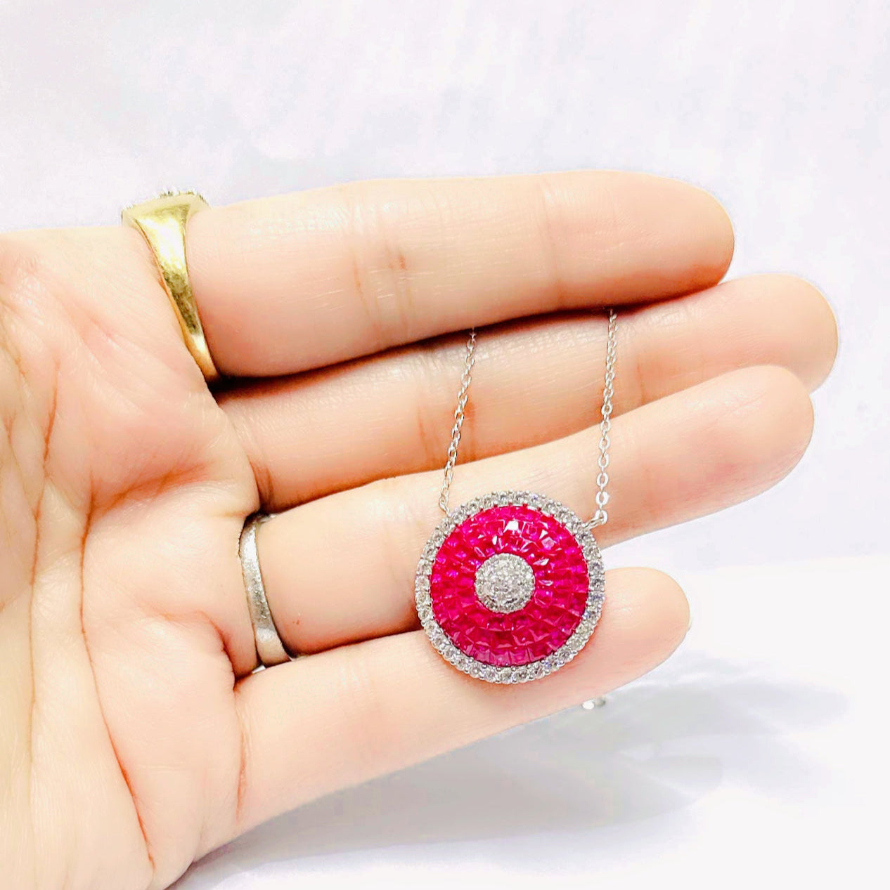 A sterling silver red cubic zirconia round-shaped chain pendant is a beautiful and elegant jewelry piece. It typically features a round red cubic zirconia stone set in 92.5% sterling silver, which gives it a shiny, polished look. The red cubic zirconia mimics the appearance of a ruby, offering vibrant color and brilliance.