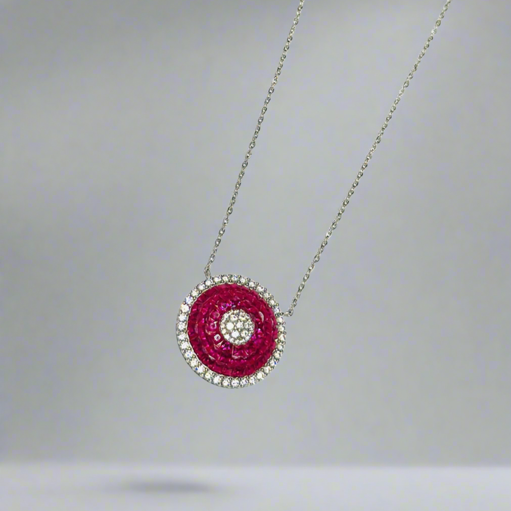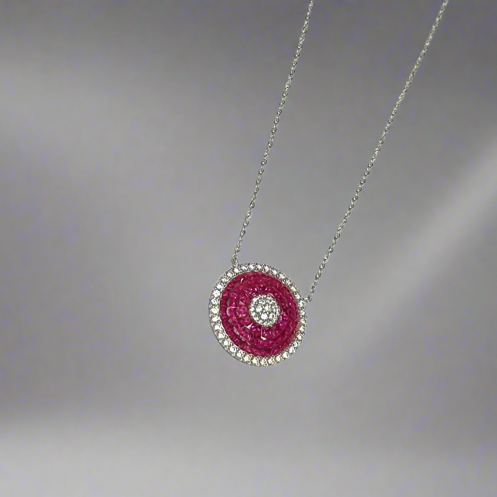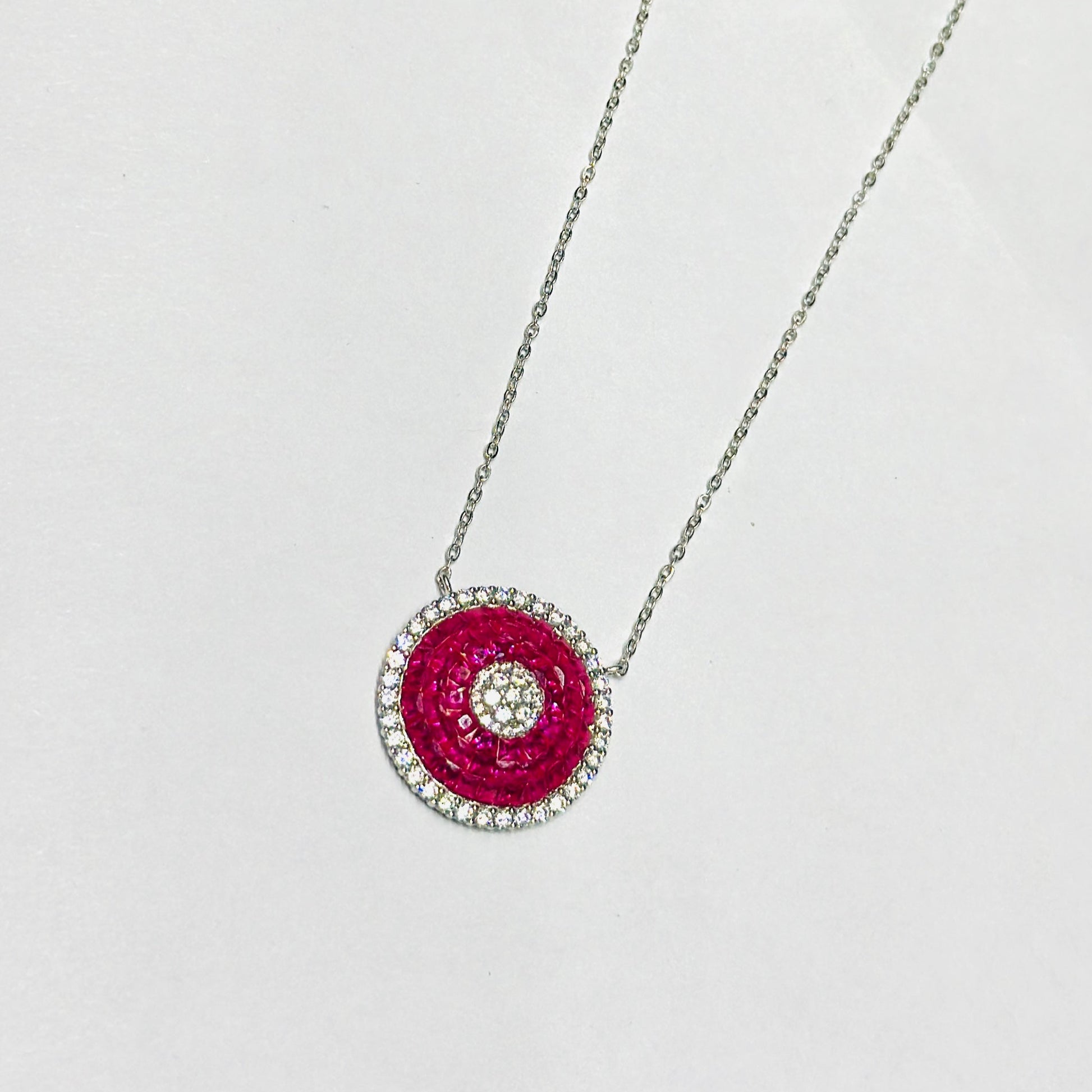 STERLING SILVER HALLMARKED RED CUBIC ZIRCON ROUND SHAPED CHAIN PENDANT