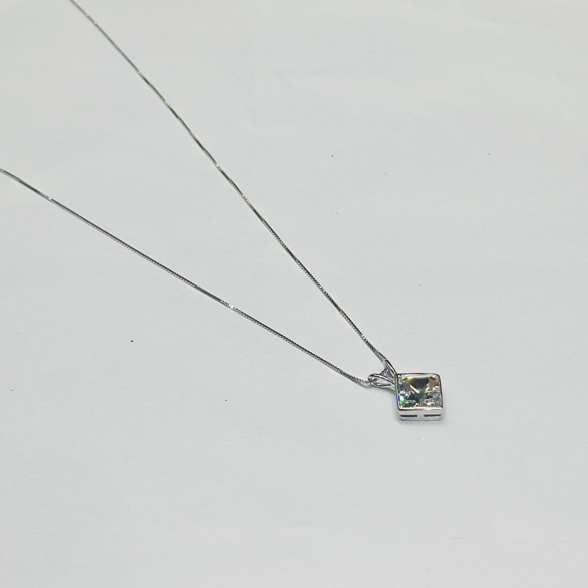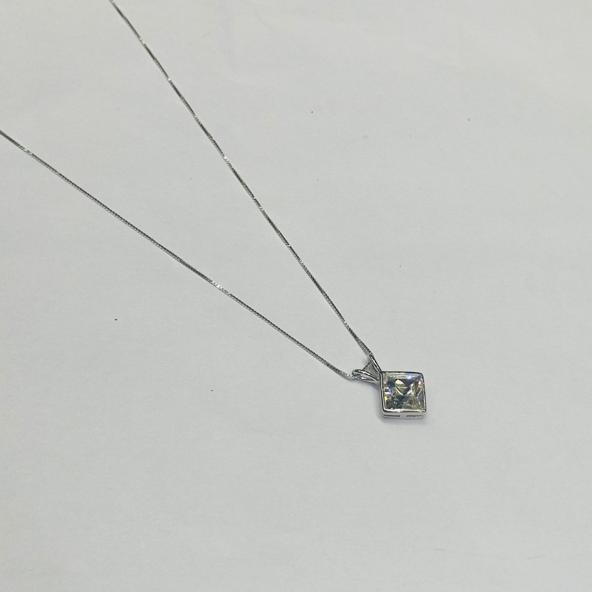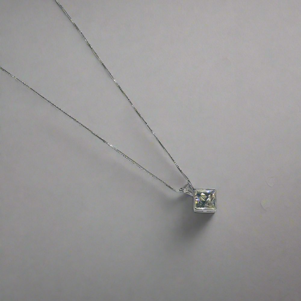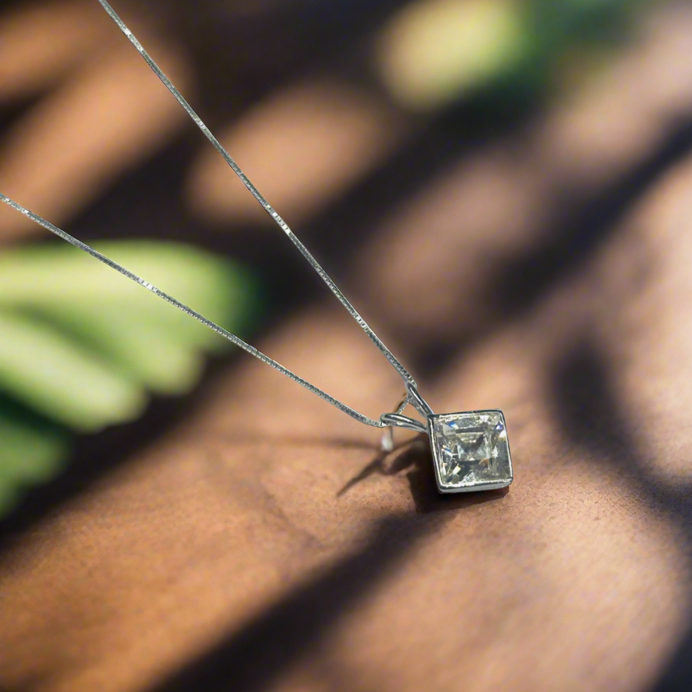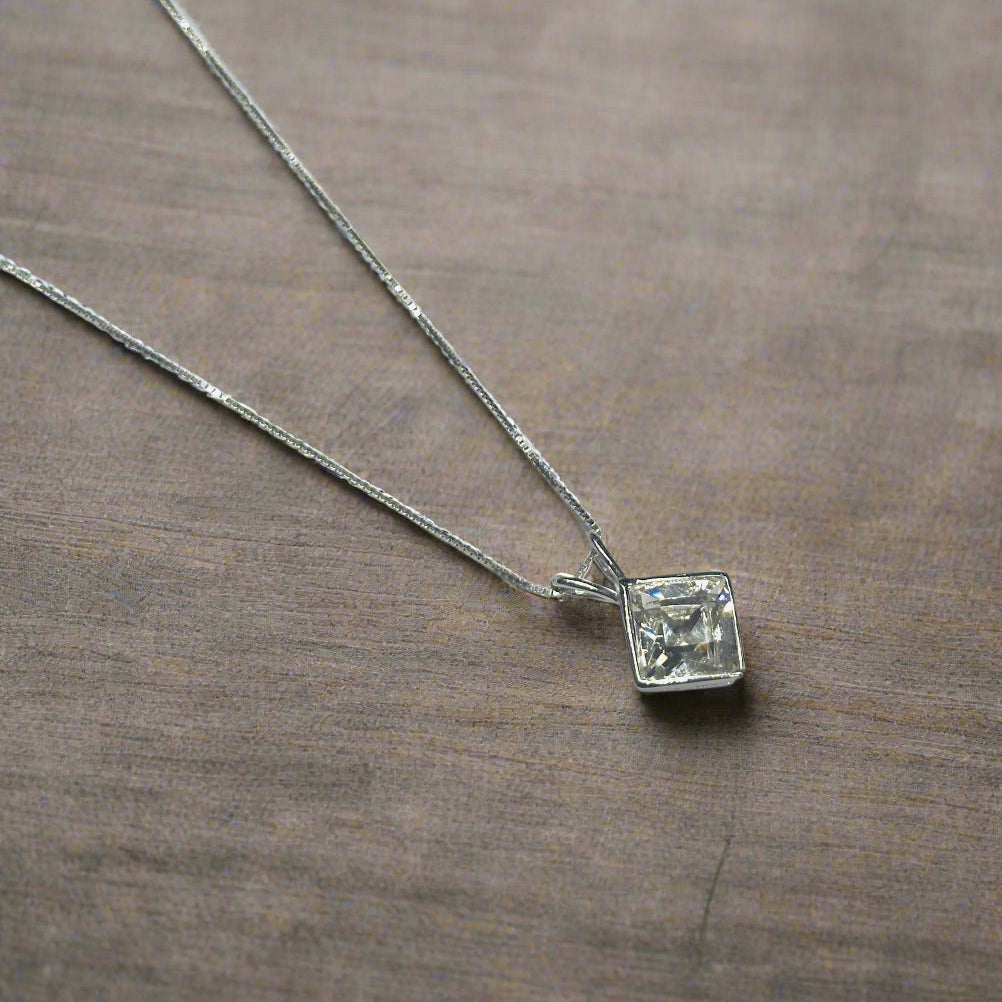 Solitaire Setting: The pendant features a single cubic zirconia stone, set in a simple yet elegant solitaire setting.
