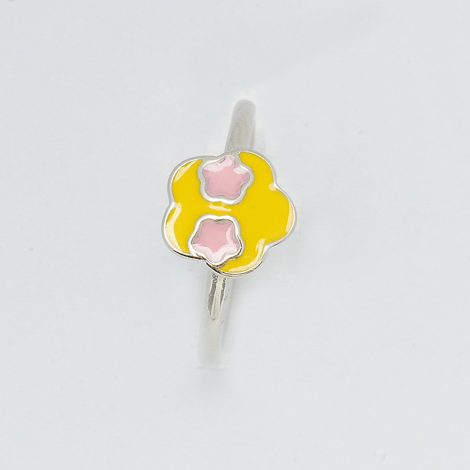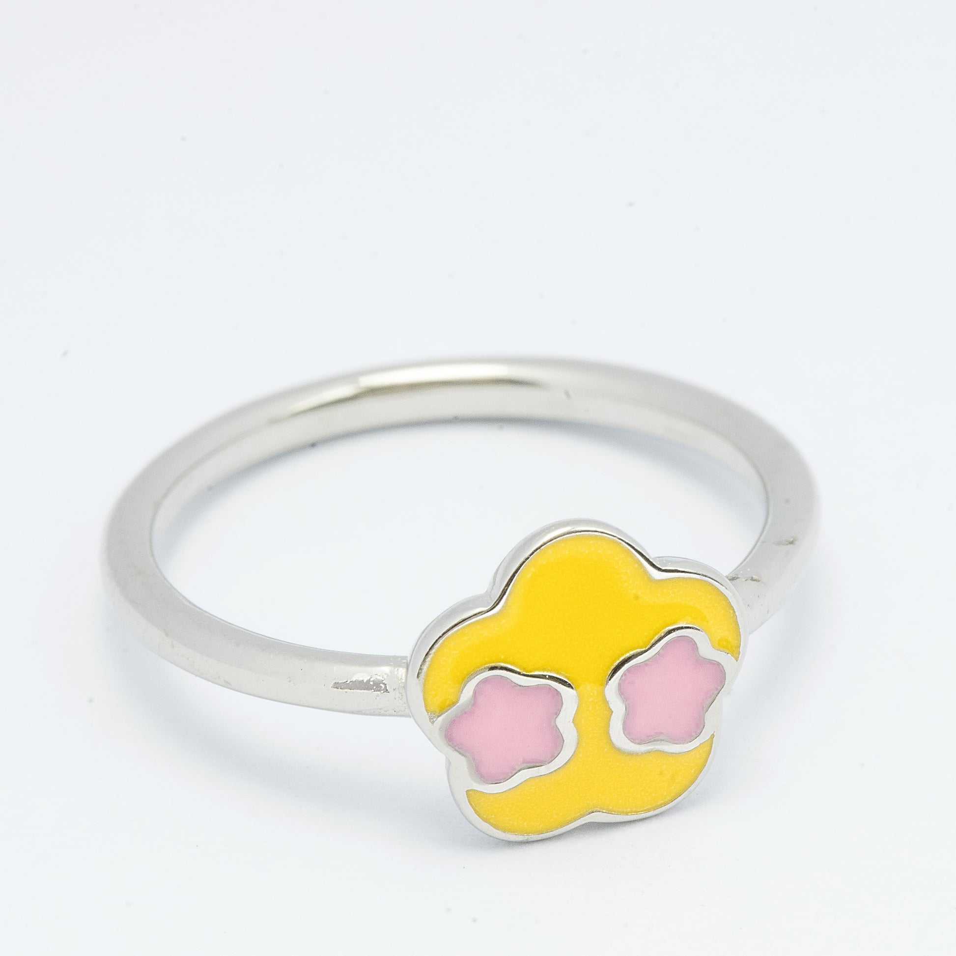 Silver Pink Eye with Yellow Enamel Ring for Kids