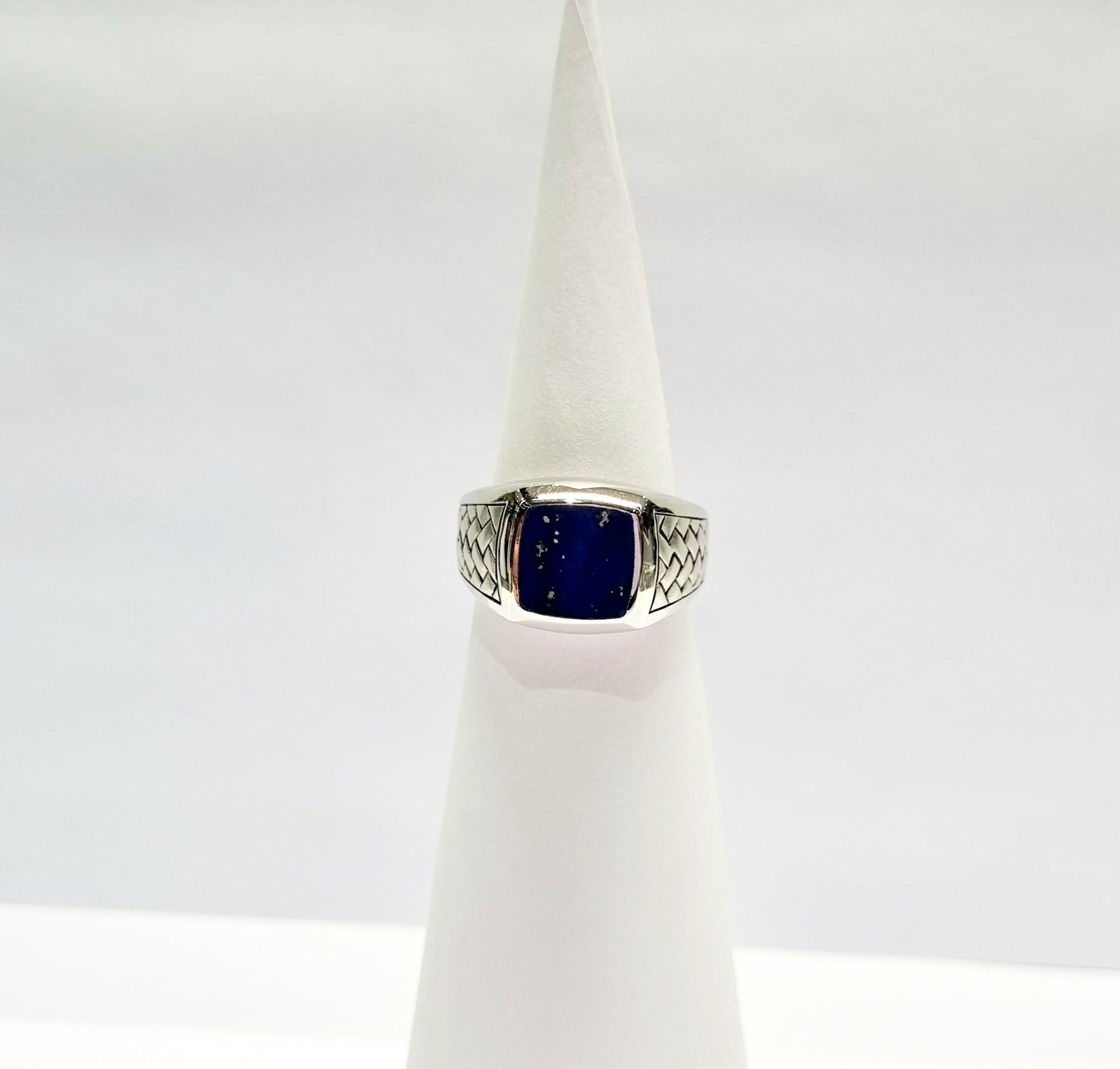 Sterling Silver Lazward Stone Squared Mist Ring for Men